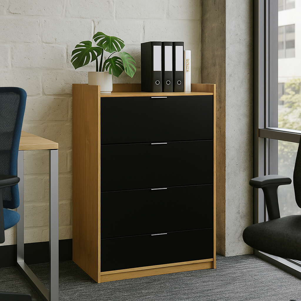 Archivero Línea M. Su diseño moderno y funcional facilita la organización eficiente de documentos en oficinas y espacios de trabajo. Fabricado con melamina resistente para uso continuo, ofrece durabilidad y estabilidad. Línea M destaca por su diseño paramétrico con ajustes sin costo extra, entrega eficiente con control de producción, precio competitivo y un estilo moderno y duradero.