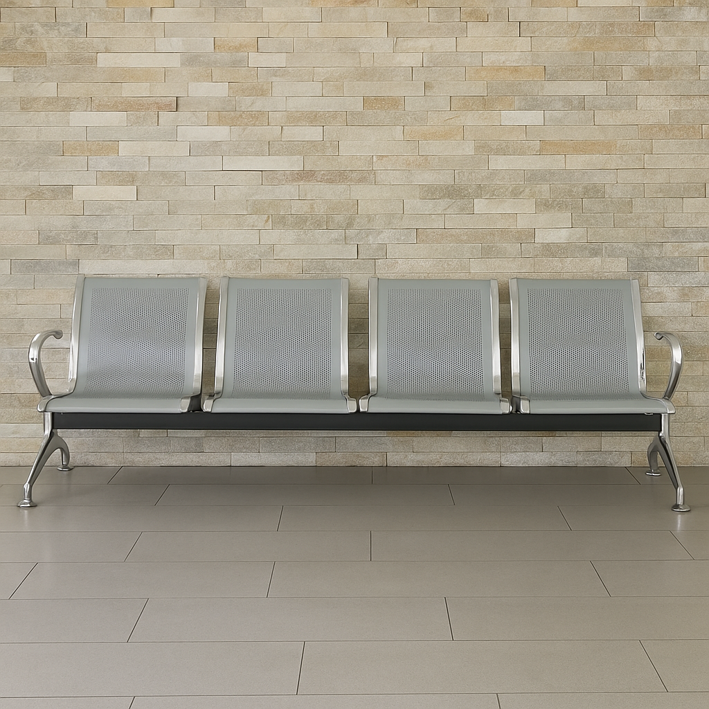La Banca Metálica Airport de 4 plazas es ideal para salas de espera, centros comerciales, recepciones y áreas comunes con alto flujo. Su estructura metálica ofrece gran resistencia y durabilidad, con travesaño calibre 14 que garantiza estabilidad y asientos y respaldos perforados en lámina calibre 18 para una ventilación cómoda y uso continuo.