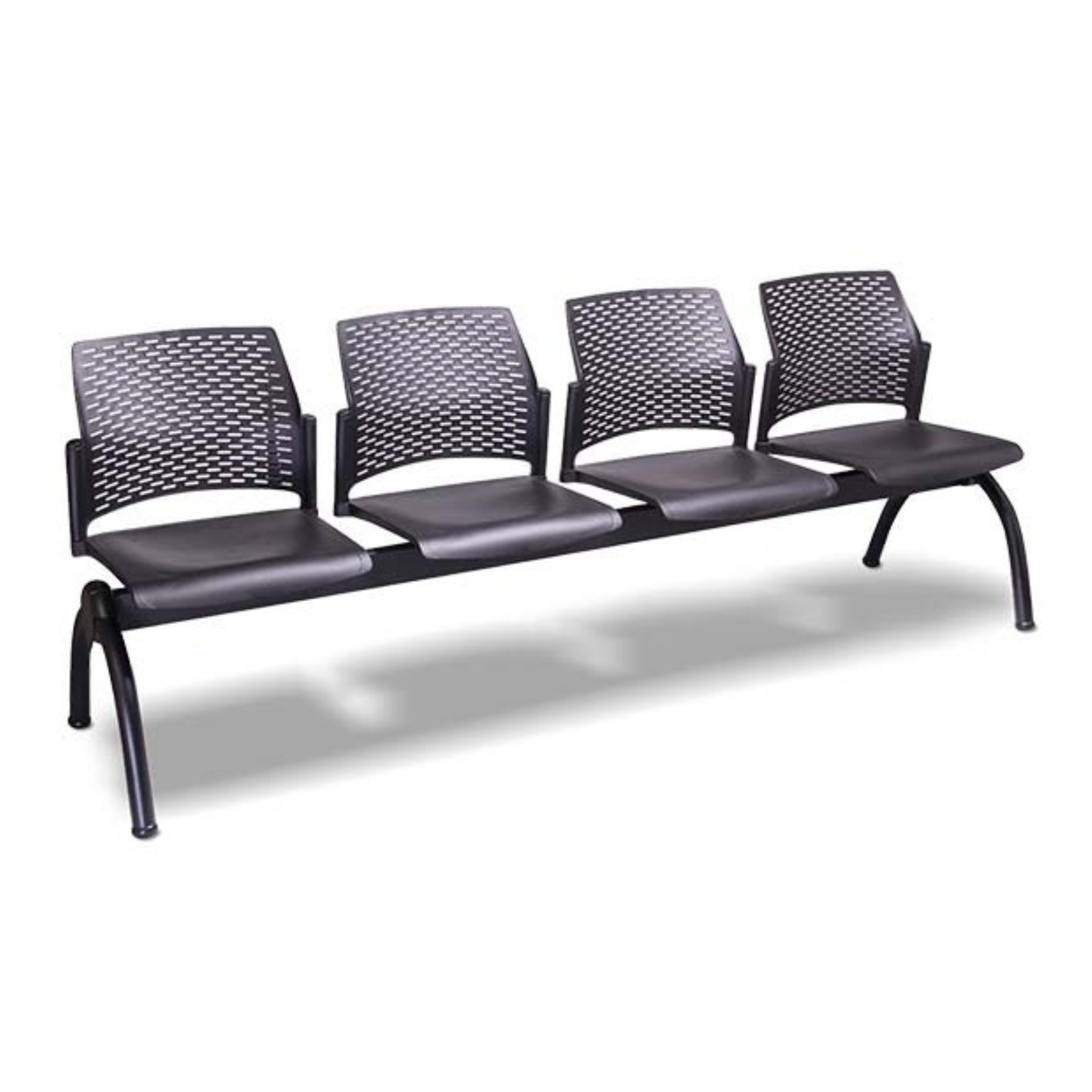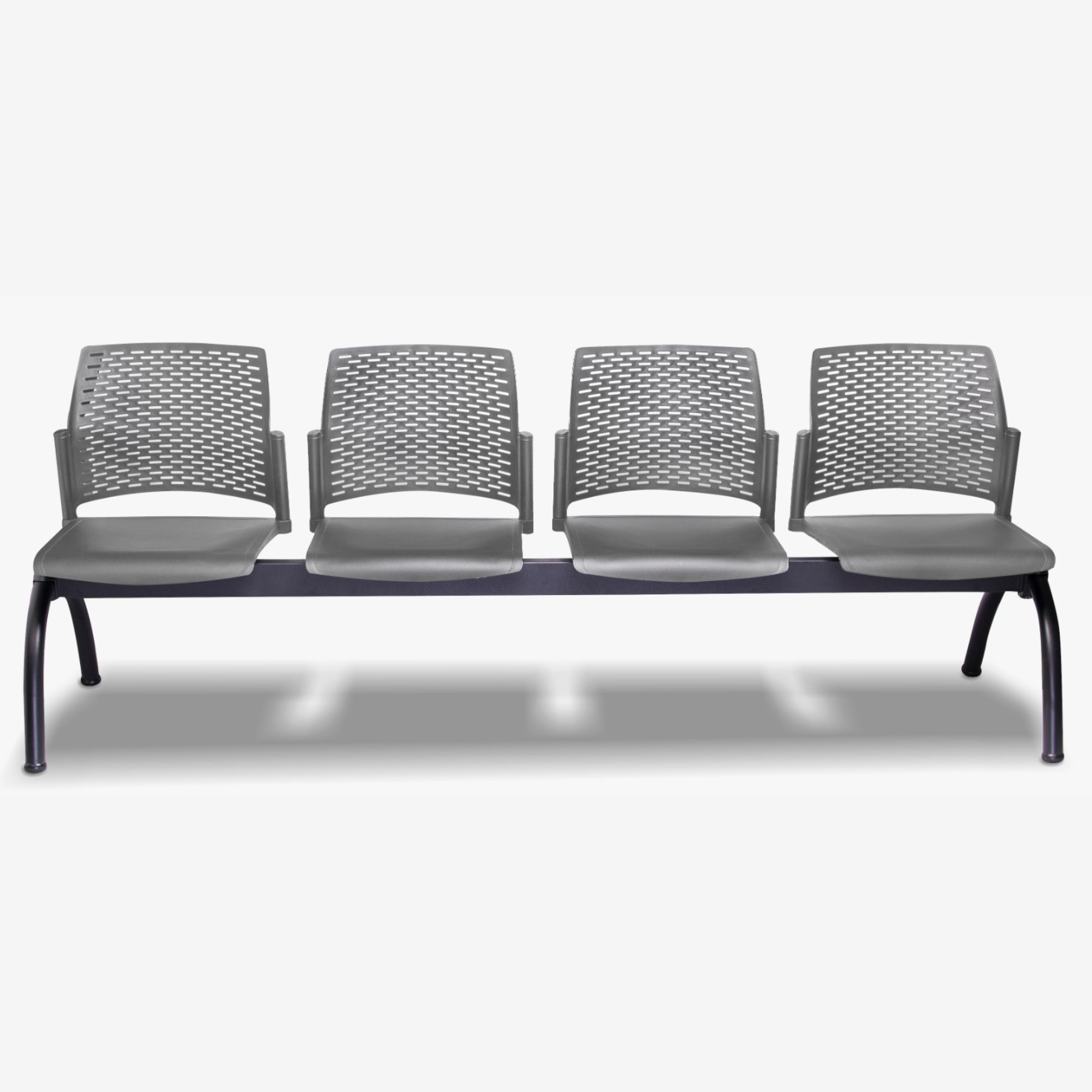 Banca 4 plazas Rewind ofrece amplias posibilidades de configuración que permiten adaptarse a las dimensiones del espacio, requerimiento de imagen y uso; debido a sus opcionales en cantidad de plazas de 2 a 4 y sus 7 colores de asiento y respaldo, así como los opcionales de acabado en estructura en pintura o cromo y accesorios como mesas revisteras y bases de tapiz para asiento con una amplia gama de texturas y colores.