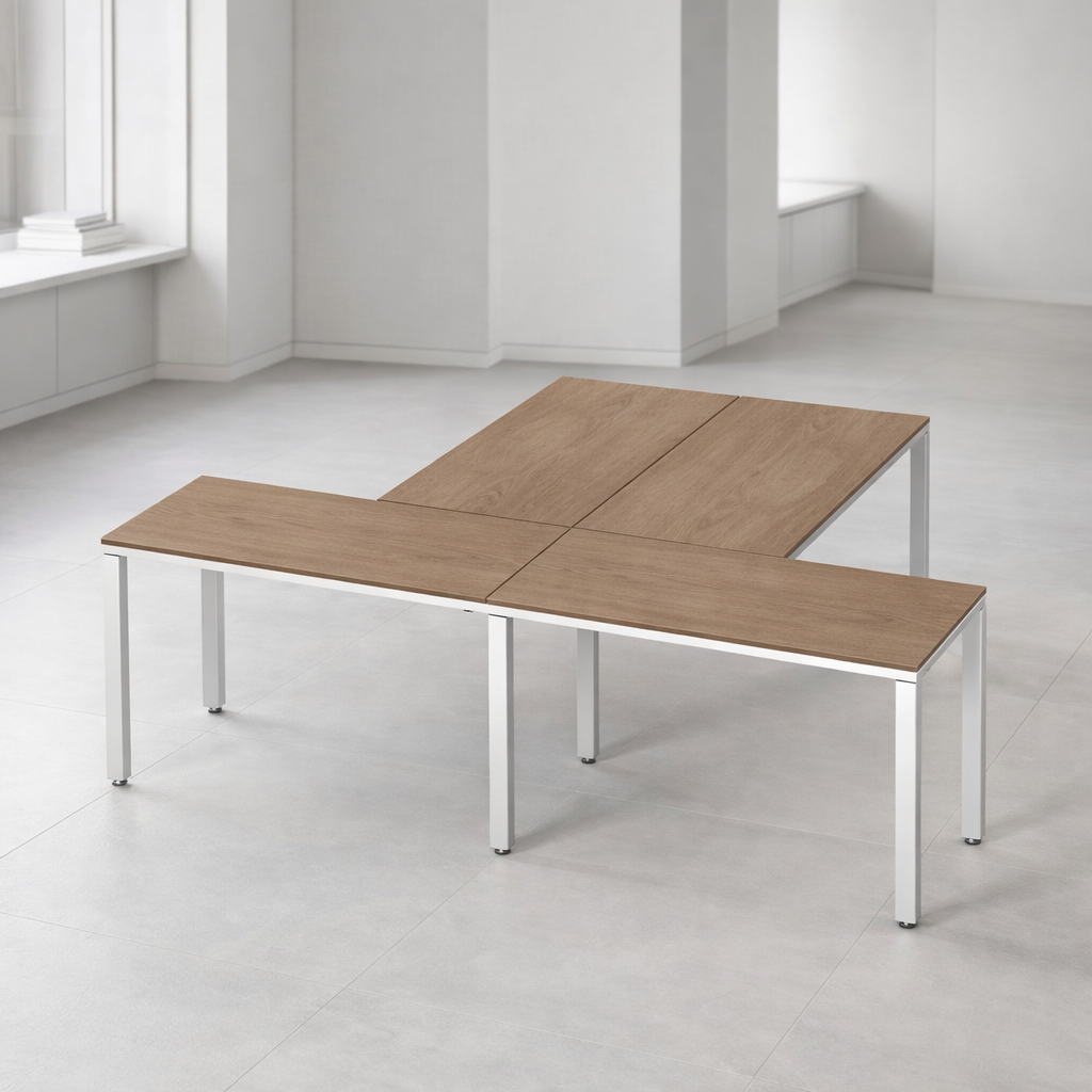 La configuración en L para 2 personas es la solución perfecta para oficinas modernas y espacios de coworking que buscan aprovechar mejor el espacio sin perder comodidad. Su diseño favorece el trabajo colaborativo, mejora la organización y crea un entorno dinámico y altamente productivo.
