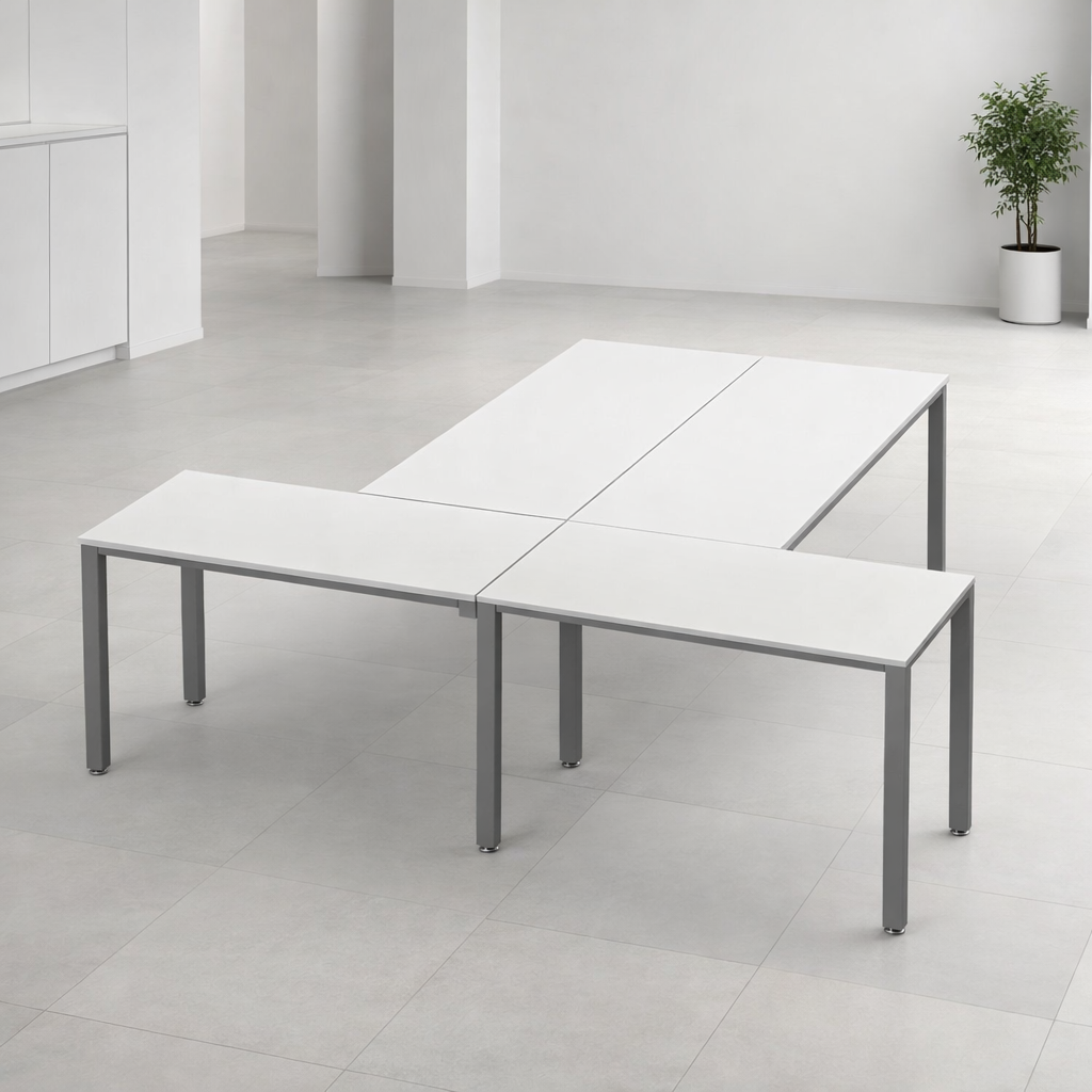 La configuración en L para 2 personas es la solución perfecta para oficinas modernas y espacios de coworking que buscan aprovechar mejor el espacio sin perder comodidad. Su diseño favorece el trabajo colaborativo, mejora la organización y crea un entorno dinámico y altamente productivo.