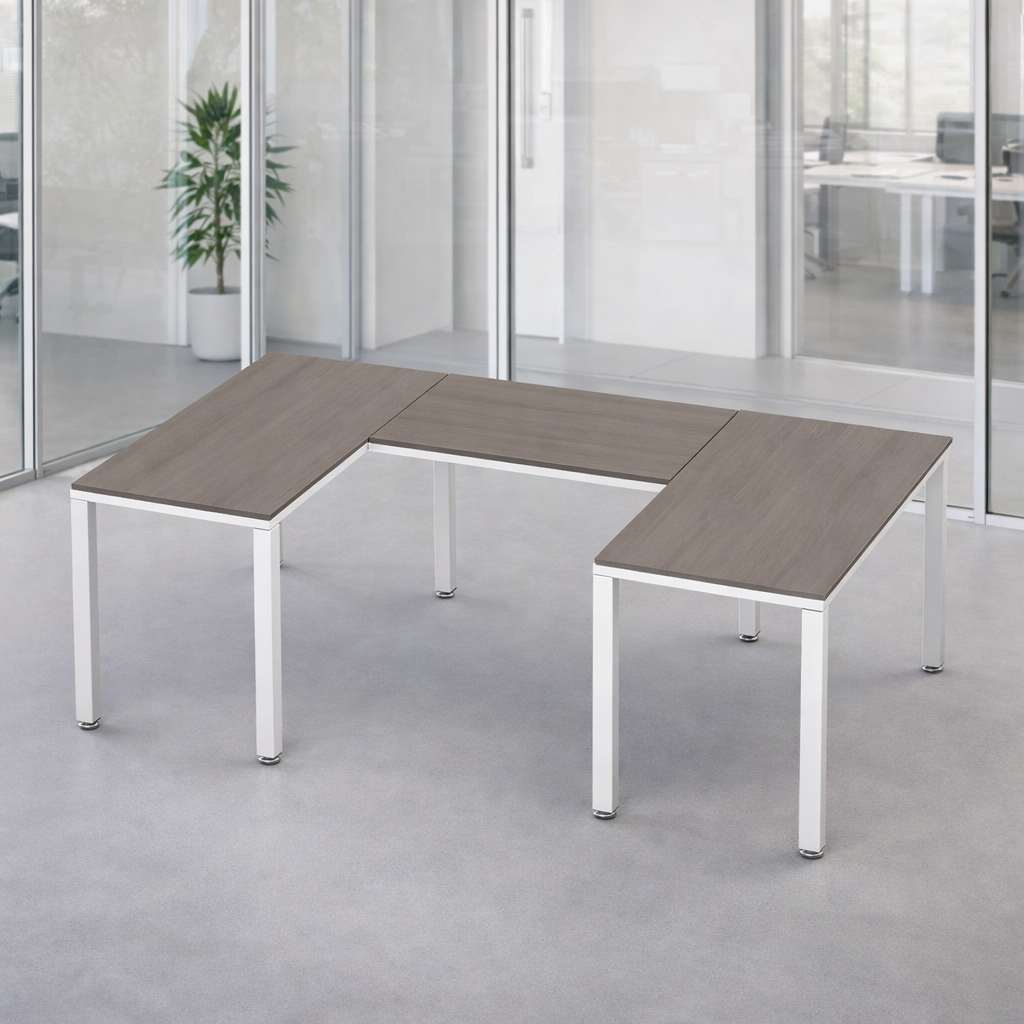 Escritorio en U Billydesk 120x210x120cm – Ceniza-Blanco