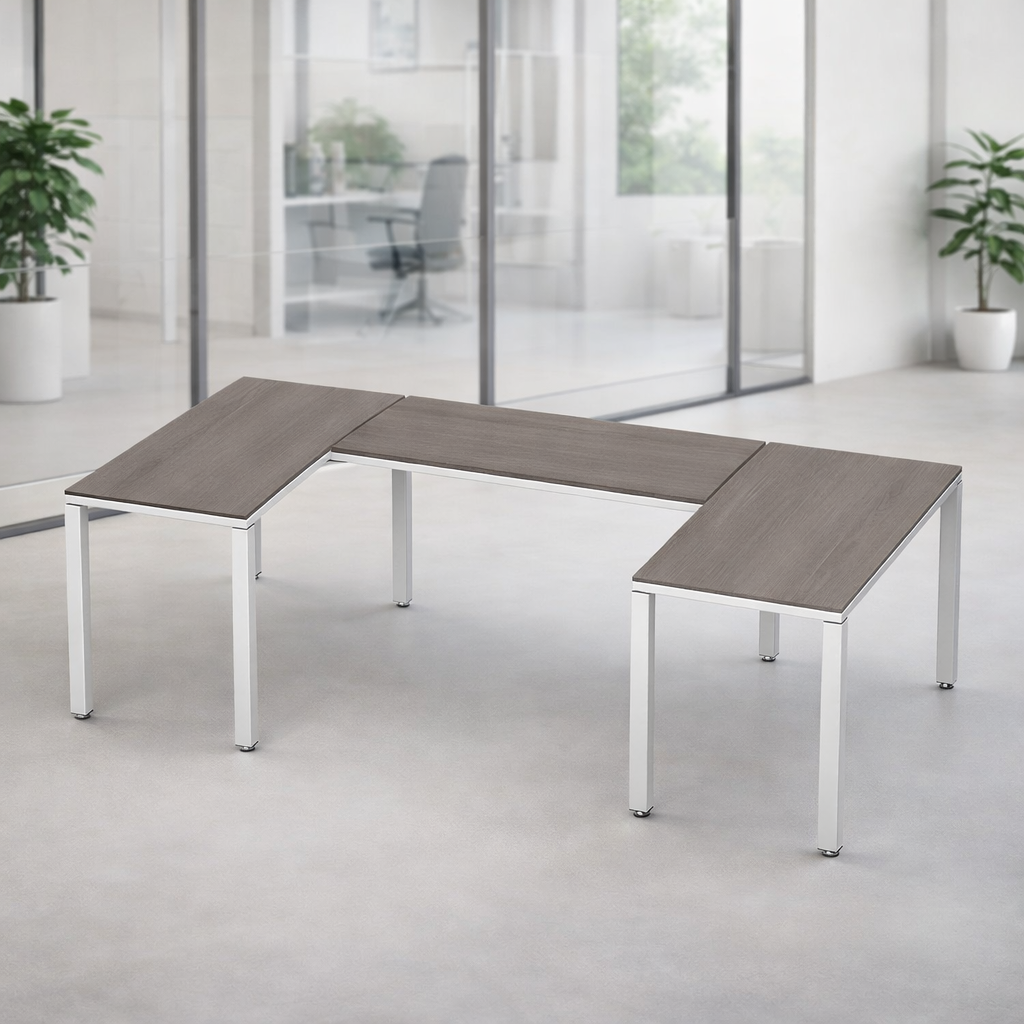 El escritorio en U conformada por 3 escritorios es ideal para un ejecutivo ya que permite una distribución eficiente del espacio, facilita la colaboración con otros compañeros y proporciona un entorno de trabajo versátil que puede usarse para reuniones, presentaciones y tareas individuales, todo al mismo tiempo.
