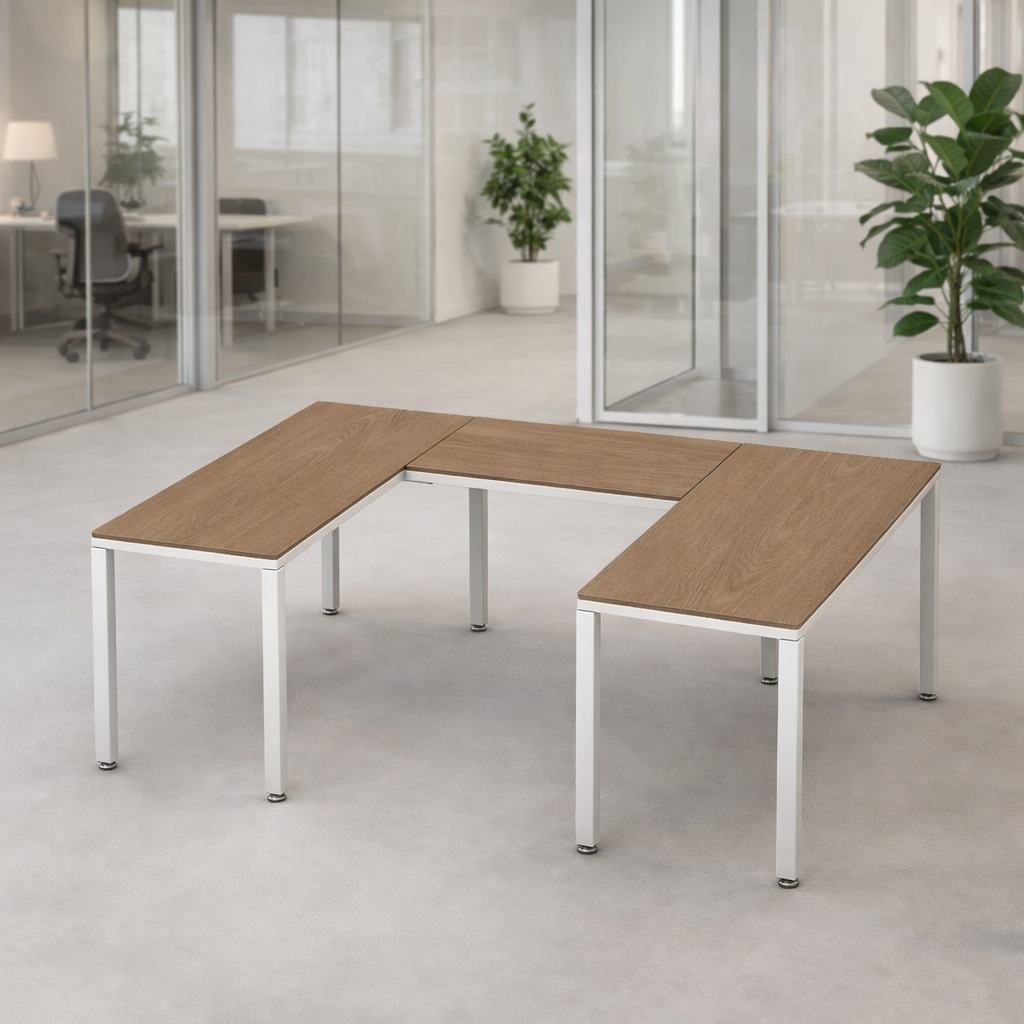El escritorio ejecutivo Billydesk es una configuración en U de mobiliario modular ideal para oficinas modernas que buscan funcionalidad, estilo y confort. Su diseño ergonómico ofrece un entorno versátil y resistente, con estructura metálica y cubiertas de melamina. Puede reconfigurarse fácilmente para adaptarse a cualquier espacio de trabajo.