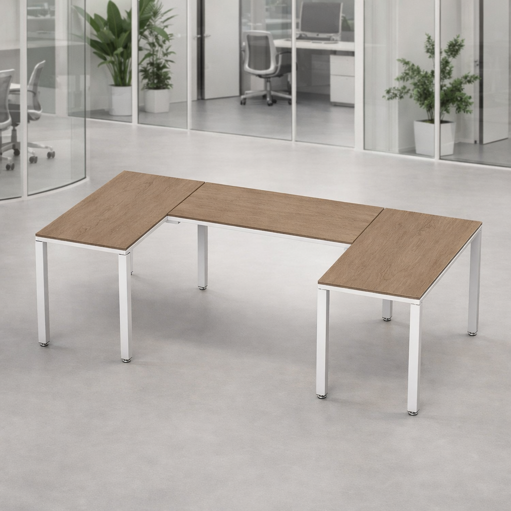 El escritorio en U conformada por 3 escritorios es ideal para un ejecutivo ya que permite una distribución eficiente del espacio, facilita la colaboración con otros compañeros y proporciona un entorno de trabajo versátil que puede usarse para reuniones, presentaciones y tareas individuales, todo al mismo tiempo.