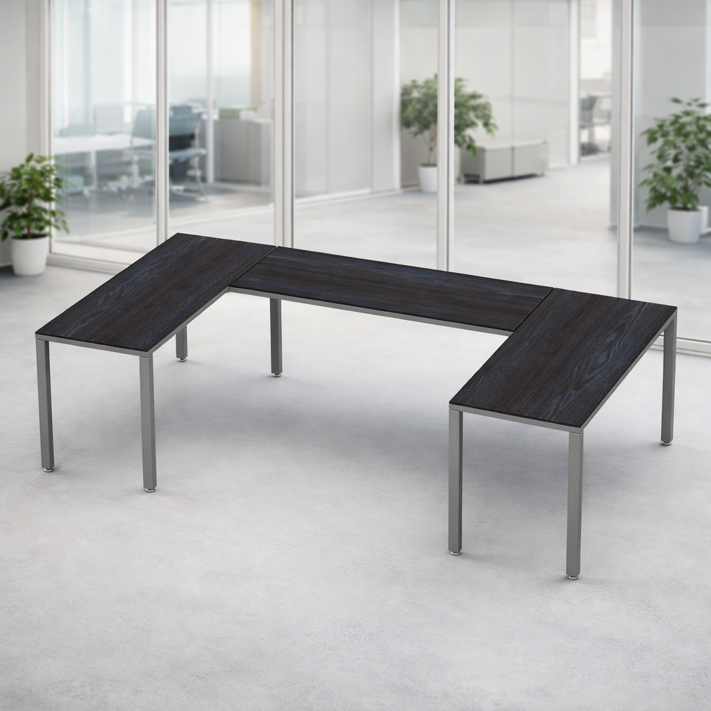 El escritorio en U conformada por 3 escritorios es ideal para un ejecutivo ya que permite una distribución eficiente del espacio, facilita la colaboración con otros compañeros y proporciona un entorno de trabajo versátil que puede usarse para reuniones, presentaciones y tareas individuales, todo al mismo tiempo.