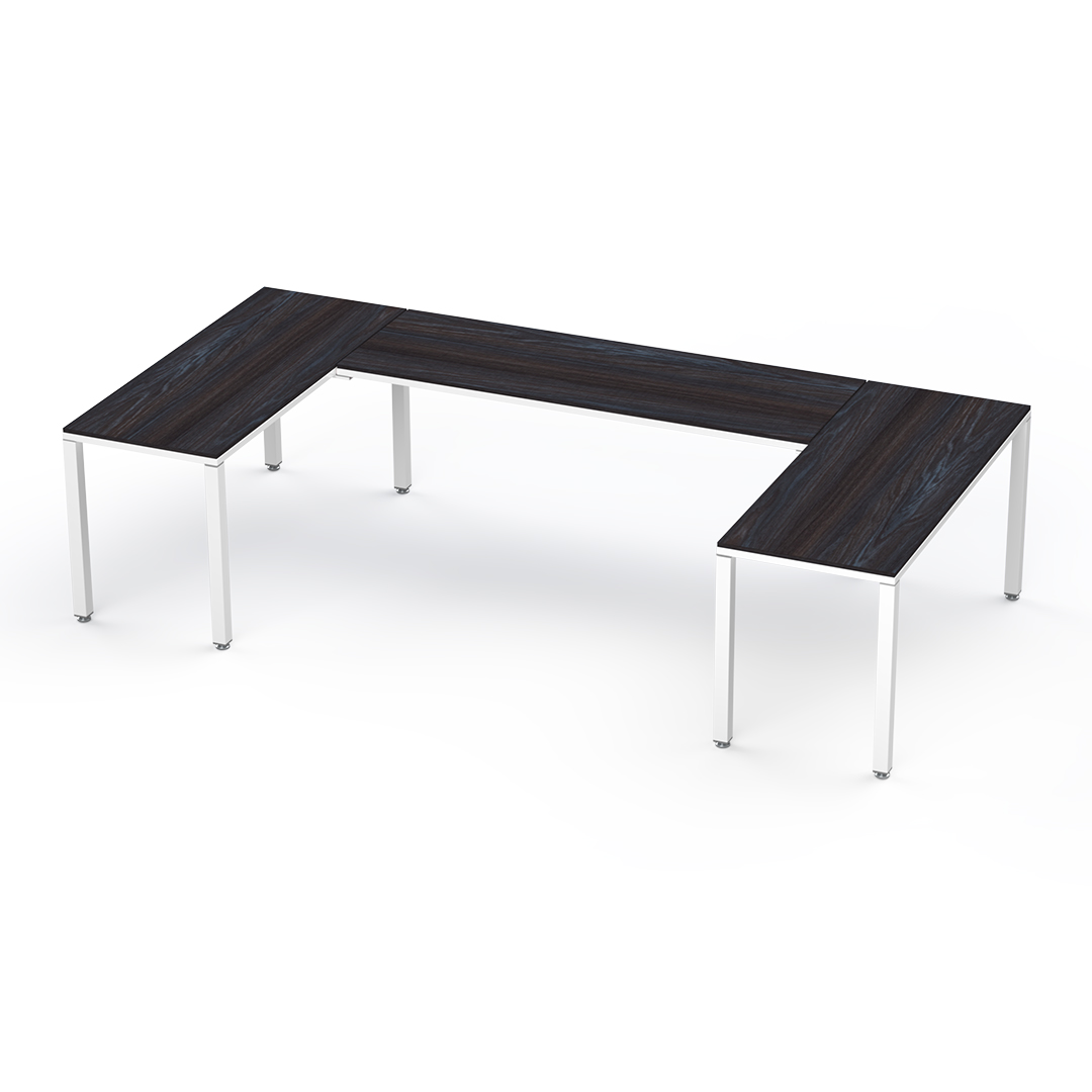 El escritorio en U conformada por 3 escritorios es ideal para un ejecutivo ya que permite una distribución eficiente del espacio, facilita la colaboración con otros compañeros y proporciona un entorno de trabajo versátil que puede usarse para reuniones, presentaciones y tareas individuales, todo al mismo tiempo.