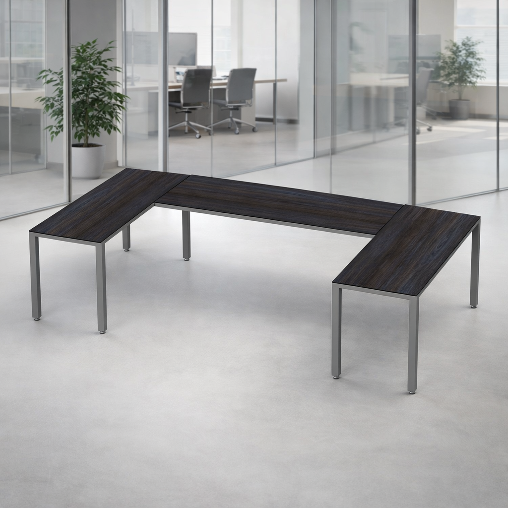 El escritorio en U conformada por 3 escritorios es ideal para un ejecutivo ya que permite una distribución eficiente del espacio, facilita la colaboración con otros compañeros y proporciona un entorno de trabajo versátil que puede usarse para reuniones, presentaciones y tareas individuales, todo al mismo tiempo.