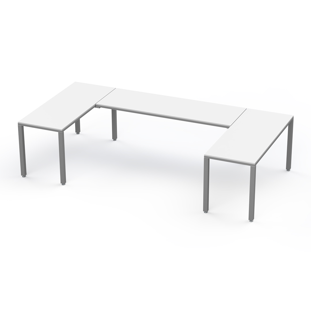 El escritorio en U conformada por 3 escritorios es ideal para un ejecutivo ya que permite una distribución eficiente del espacio, facilita la colaboración con otros compañeros y proporciona un entorno de trabajo versátil que puede usarse para reuniones, presentaciones y tareas individuales, todo al mismo tiempo.