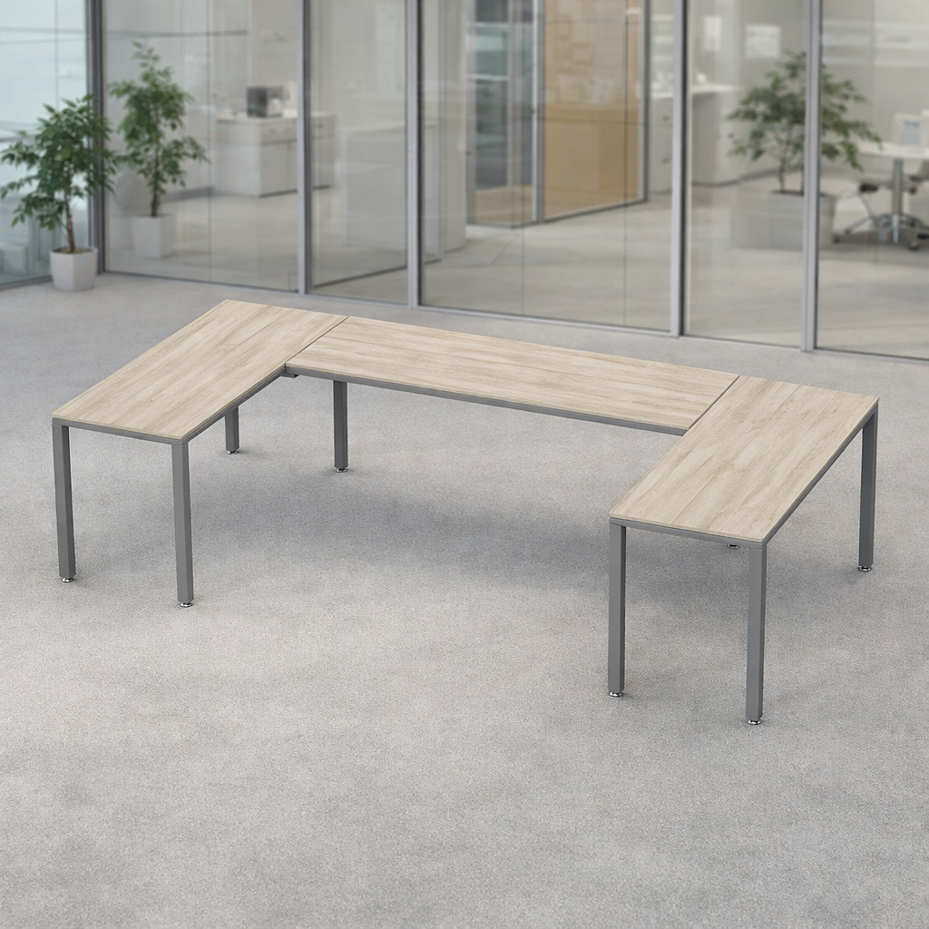 Escritorio en U Billydesk 150x300x150cm – Encino Polar-oxford