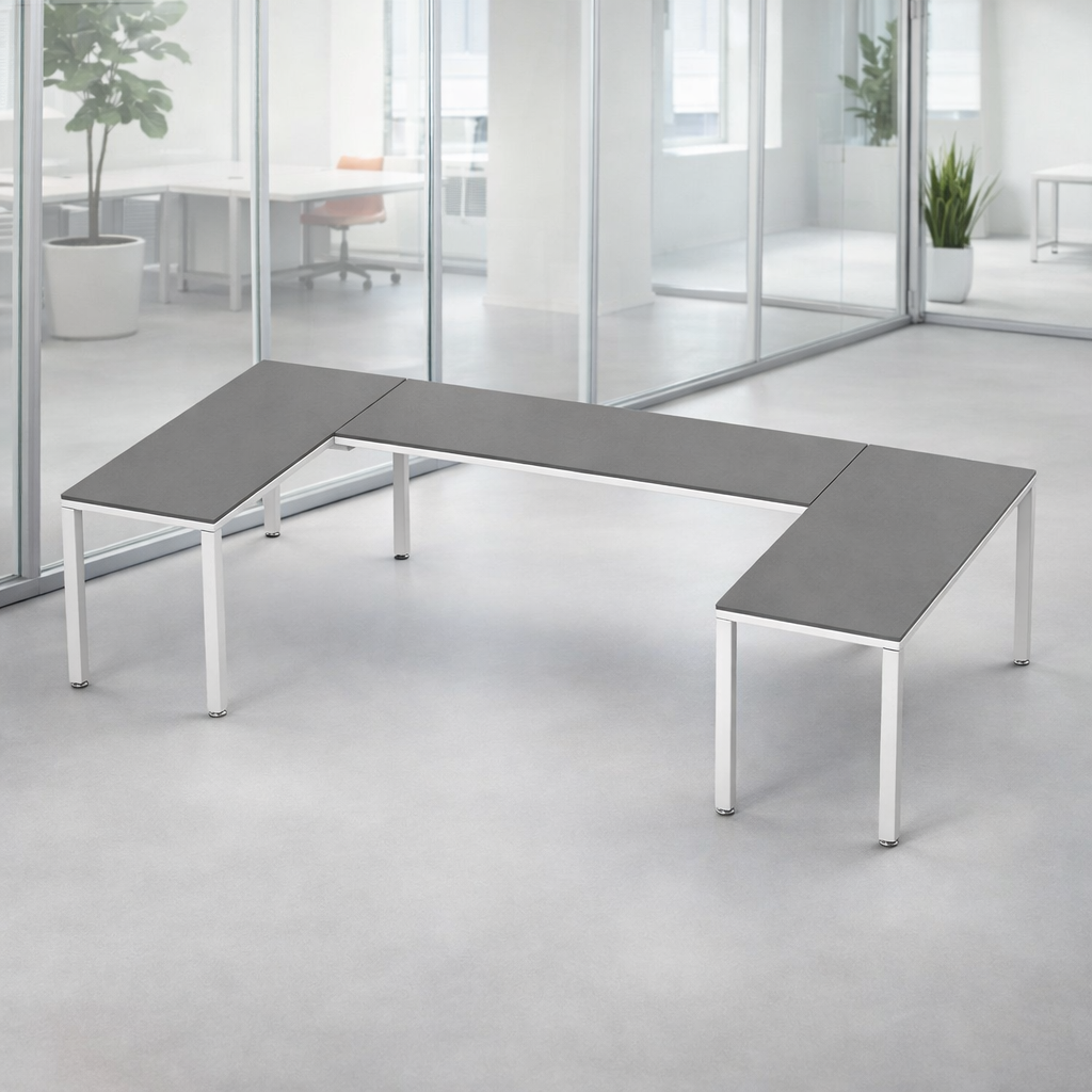 El escritorio en U conformada por 3 escritorios es ideal para un ejecutivo ya que permite una distribución eficiente del espacio, facilita la colaboración con otros compañeros y proporciona un entorno de trabajo versátil que puede usarse para reuniones, presentaciones y tareas individuales, todo al mismo tiempo.