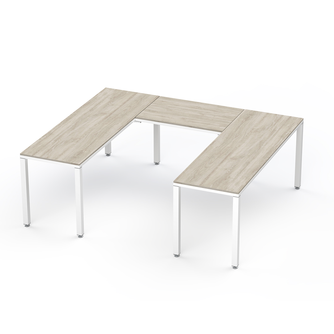La configuración U conformada por 3 escritorios es ideal para un ejecutivo ya que permite una distribución eficiente del espacio, facilita la colaboración con otros compañeros y proporciona un entorno de trabajo versátil que puede usarse para reuniones, presentaciones y tareas individuales, todo al mismo tiempo.
