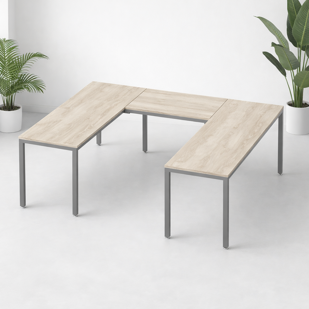 La configuración U conformada por 3 escritorios es ideal para un ejecutivo ya que permite una distribución eficiente del espacio, facilita la colaboración con otros compañeros y proporciona un entorno de trabajo versátil que puede usarse para reuniones, presentaciones y tareas individuales, todo al mismo tiempo.