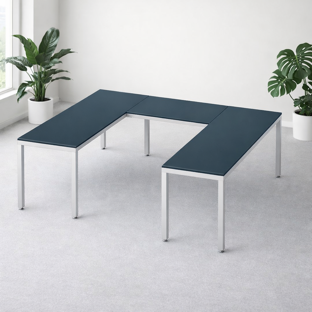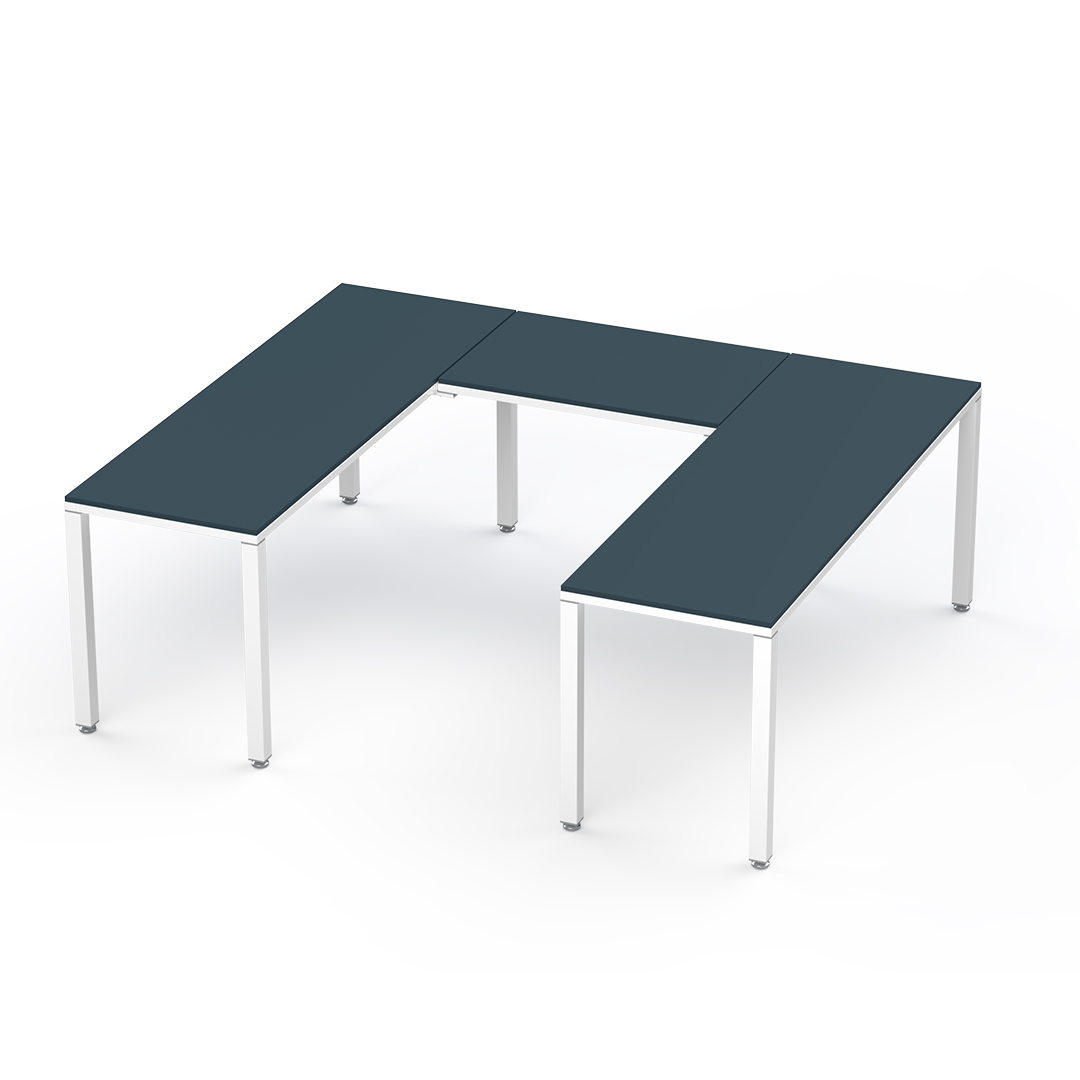 La configuración U conformada por 3 escritorios es ideal para un ejecutivo ya que permite una distribución eficiente del espacio, facilita la colaboración con otros compañeros y proporciona un entorno de trabajo versátil que puede usarse para reuniones, presentaciones y tareas individuales, todo al mismo tiempo.