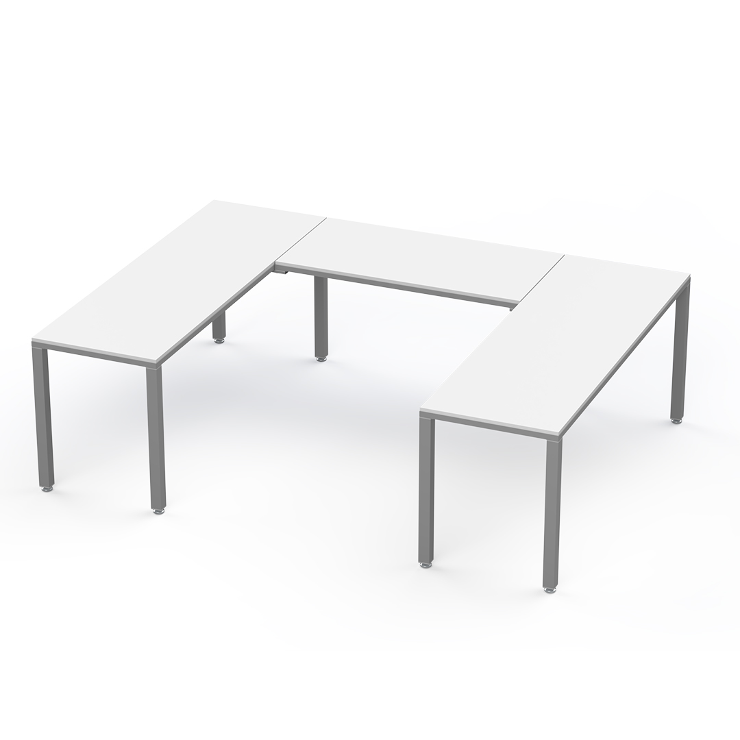 La configuración U conformada por 3 escritorios es ideal para un ejecutivo ya que permite una distribución eficiente del espacio, facilita la colaboración con otros compañeros y proporciona un entorno de trabajo versátil que puede usarse para reuniones, presentaciones y tareas individuales, todo al mismo tiempo.