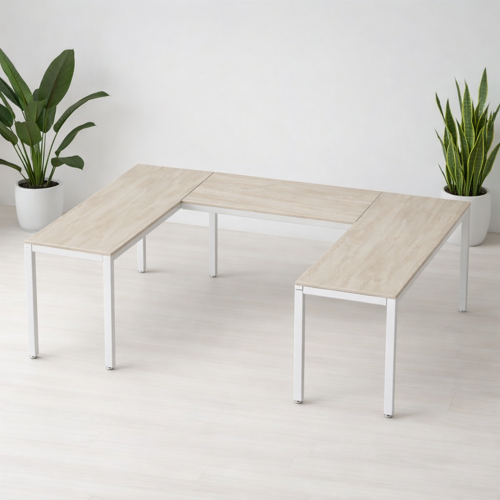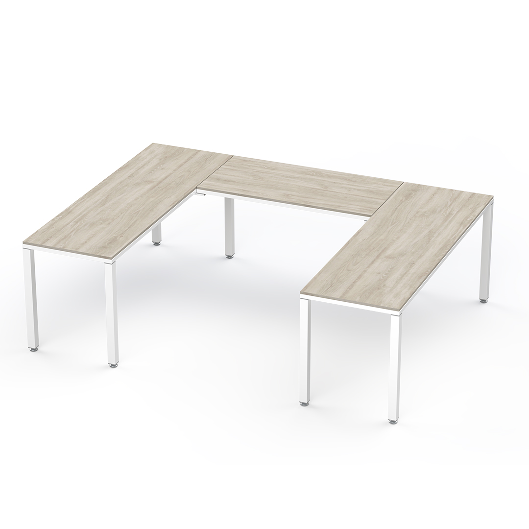 La configuración U conformada por 3 escritorios es ideal para un ejecutivo ya que permite una distribución eficiente del espacio, facilita la colaboración con otros compañeros y proporciona un entorno de trabajo versátil que puede usarse para reuniones, presentaciones y tareas individuales, todo al mismo tiempo.