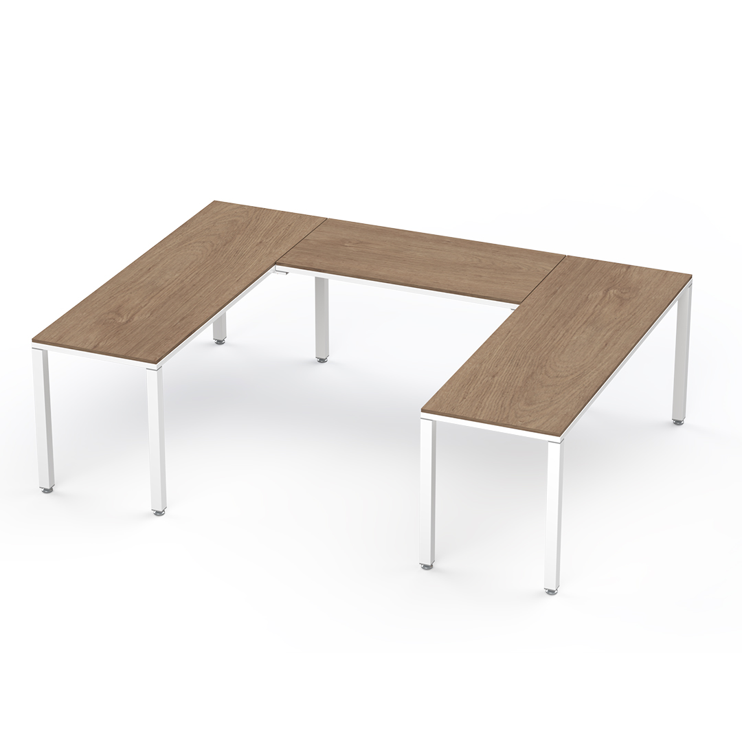 La configuración U conformada por 3 escritorios es ideal para un ejecutivo ya que permite una distribución eficiente del espacio, facilita la colaboración con otros compañeros y proporciona un entorno de trabajo versátil que puede usarse para reuniones, presentaciones y tareas individuales, todo al mismo tiempo.