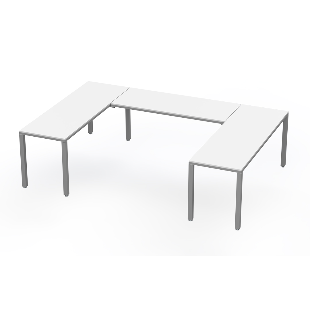 El escritorio en U conformada por 3 escritorios es ideal para un ejecutivo ya que permite una distribución eficiente del espacio, facilita la colaboración con otros compañeros y proporciona un entorno de trabajo versátil que puede usarse para reuniones, presentaciones y tareas individuales, todo al mismo tiempo.
