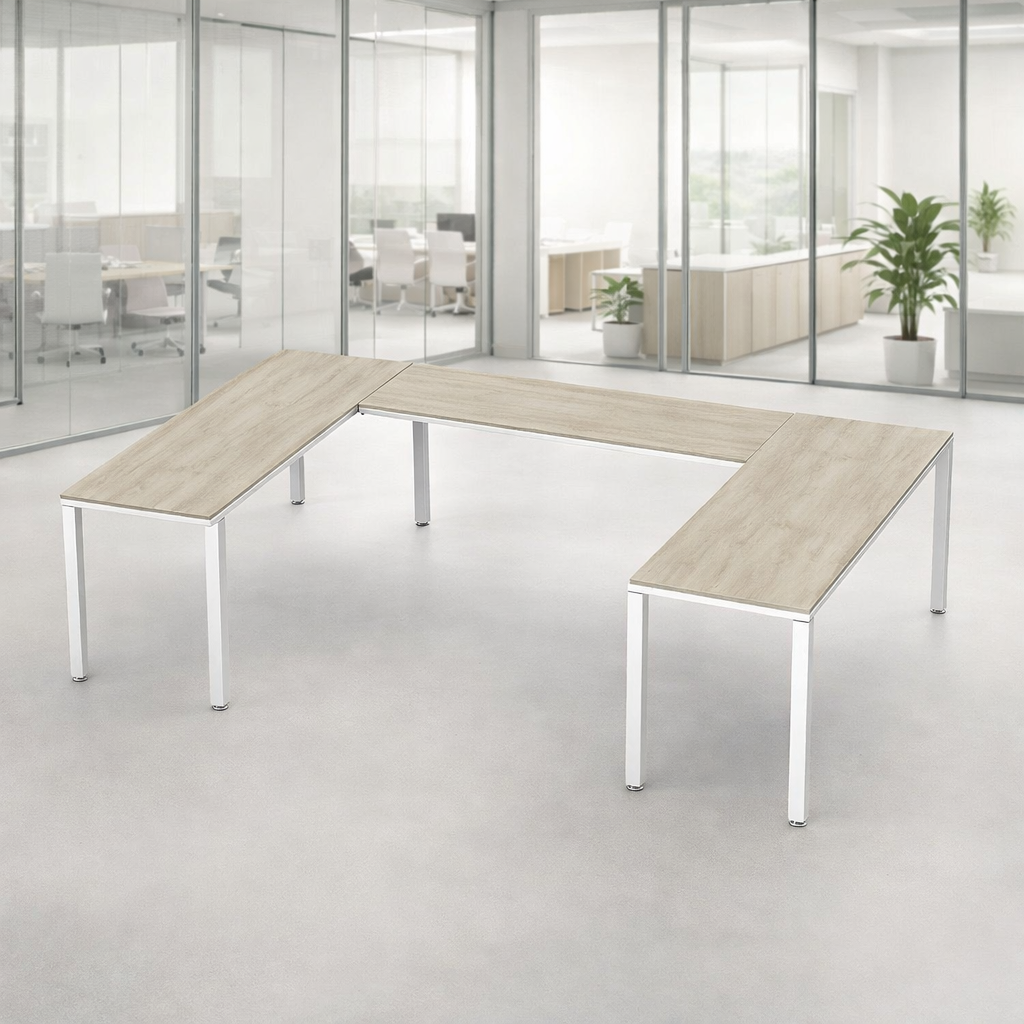 El escritorio en U conformada por 3 escritorios es ideal para un ejecutivo ya que permite una distribución eficiente del espacio, facilita la colaboración con otros compañeros y proporciona un entorno de trabajo versátil que puede usarse para reuniones, presentaciones y tareas individuales, todo al mismo tiempo.