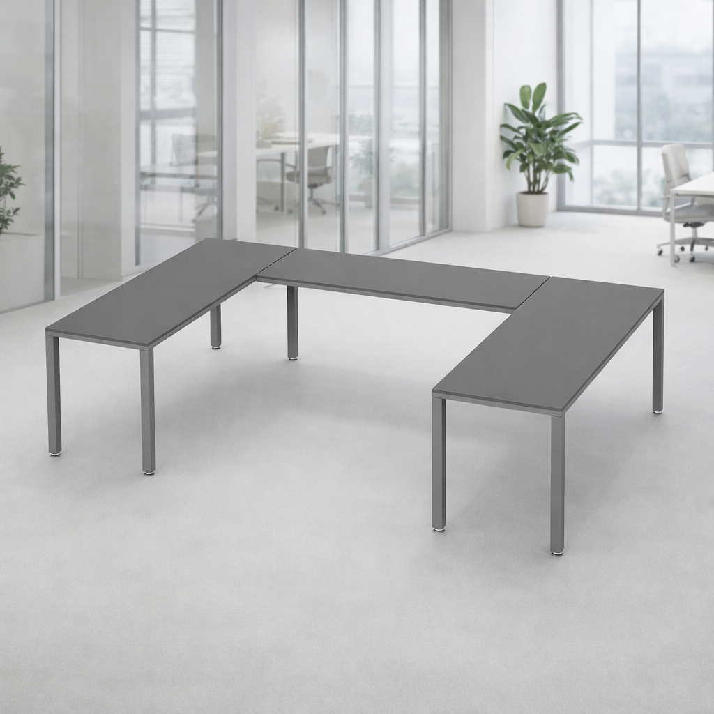 El escritorio en U conformada por 3 escritorios es ideal para un ejecutivo ya que permite una distribución eficiente del espacio, facilita la colaboración con otros compañeros y proporciona un entorno de trabajo versátil que puede usarse para reuniones, presentaciones y tareas individuales, todo al mismo tiempo.