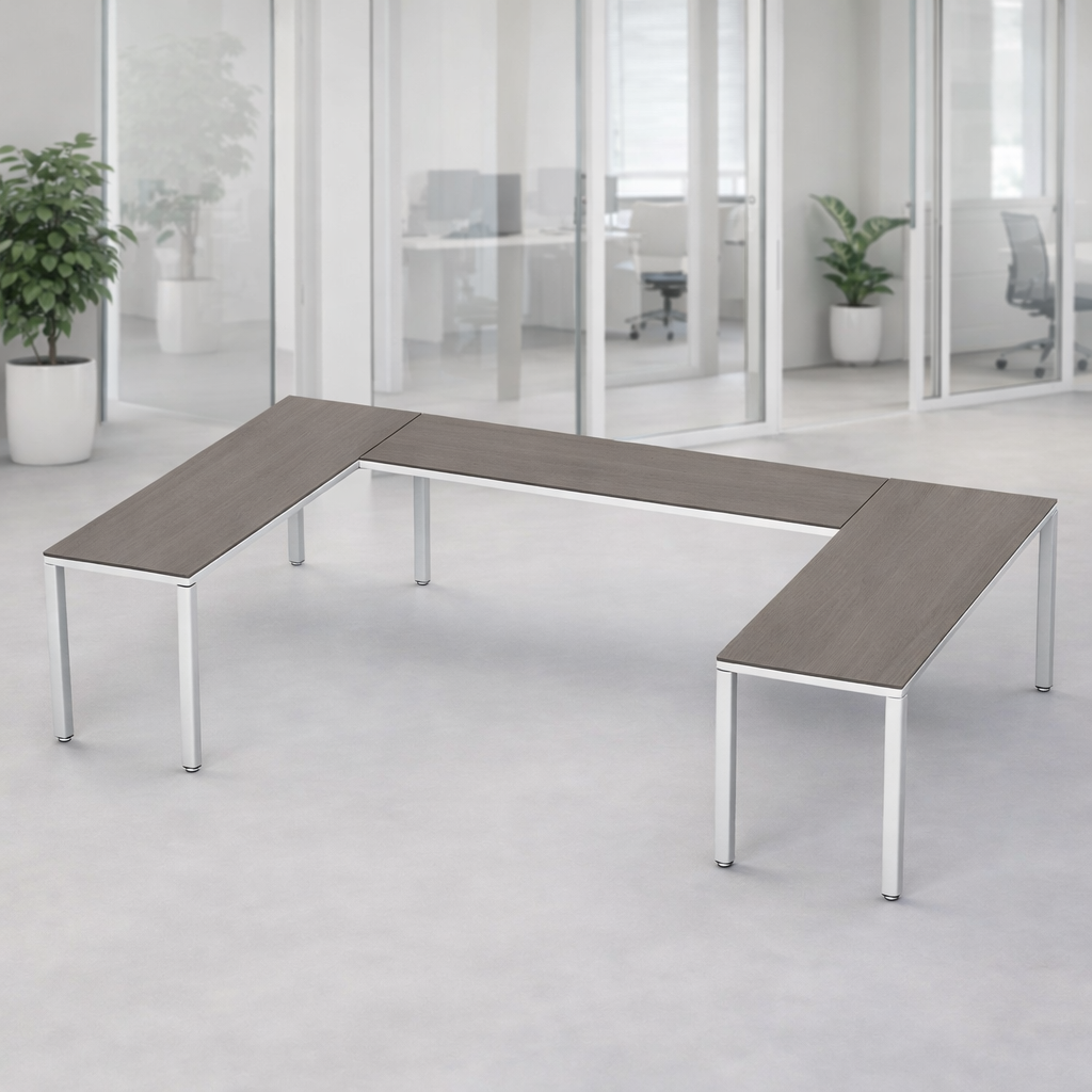 El escritorio en U conformada por 3 escritorios es ideal para un ejecutivo ya que permite una distribución eficiente del espacio, facilita la colaboración con otros compañeros y proporciona un entorno de trabajo versátil que puede usarse para reuniones, presentaciones y tareas individuales, todo al mismo tiempo.