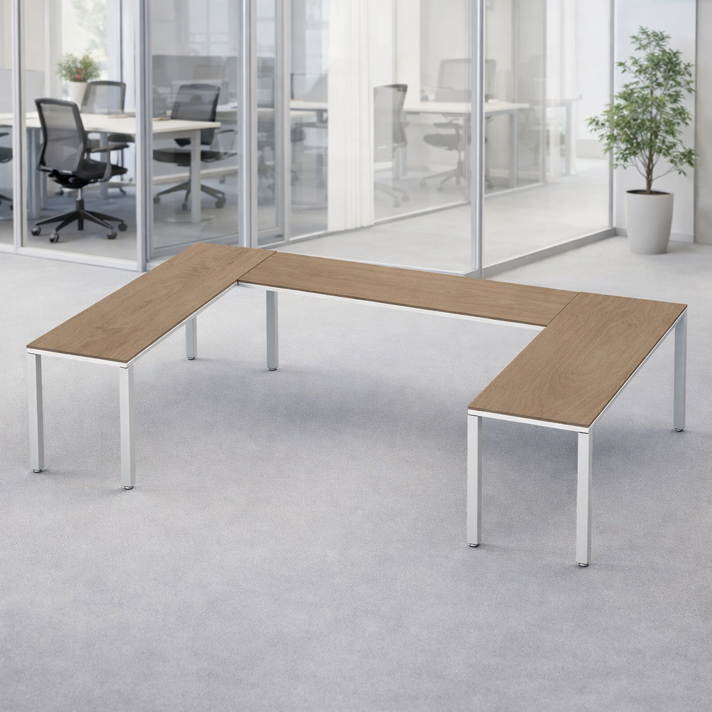El escritorio en U conformada por 3 escritorios es ideal para un ejecutivo ya que permite una distribución eficiente del espacio, facilita la colaboración con otros compañeros y proporciona un entorno de trabajo versátil que puede usarse para reuniones, presentaciones y tareas individuales, todo al mismo tiempo.
