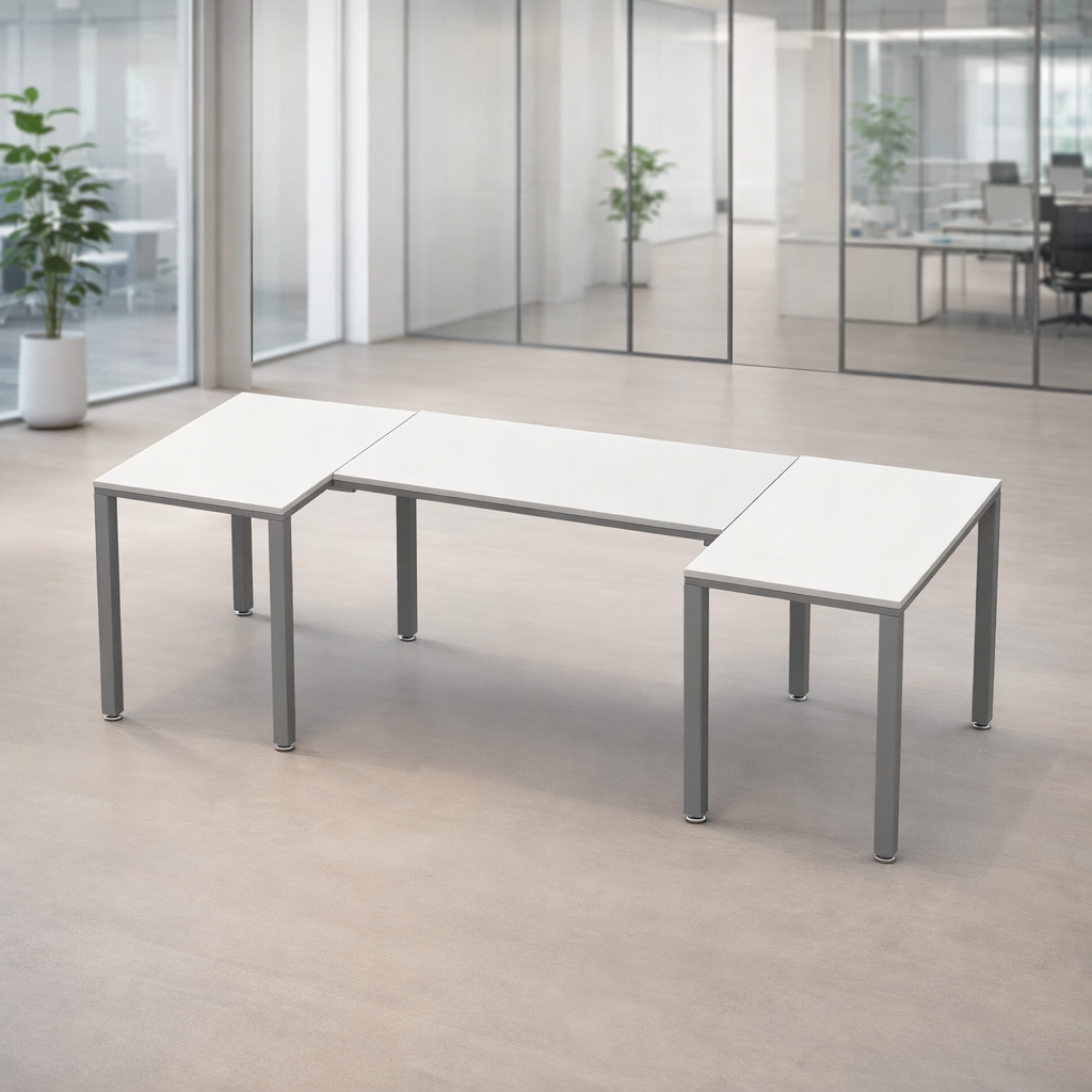 El escritorio en U conformada por 3 escritorios es ideal para un ejecutivo ya que permite una distribución eficiente del espacio, facilita la colaboración con otros compañeros y proporciona un entorno de trabajo versátil que puede usarse para reuniones, presentaciones y tareas individuales, todo al mismo tiempo.