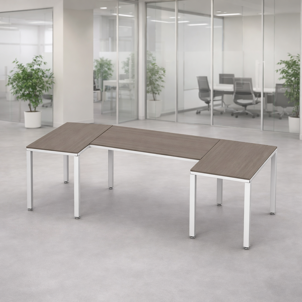 Escritorio en U Billydesk 90x240x90cm – Ceniza-Blanco