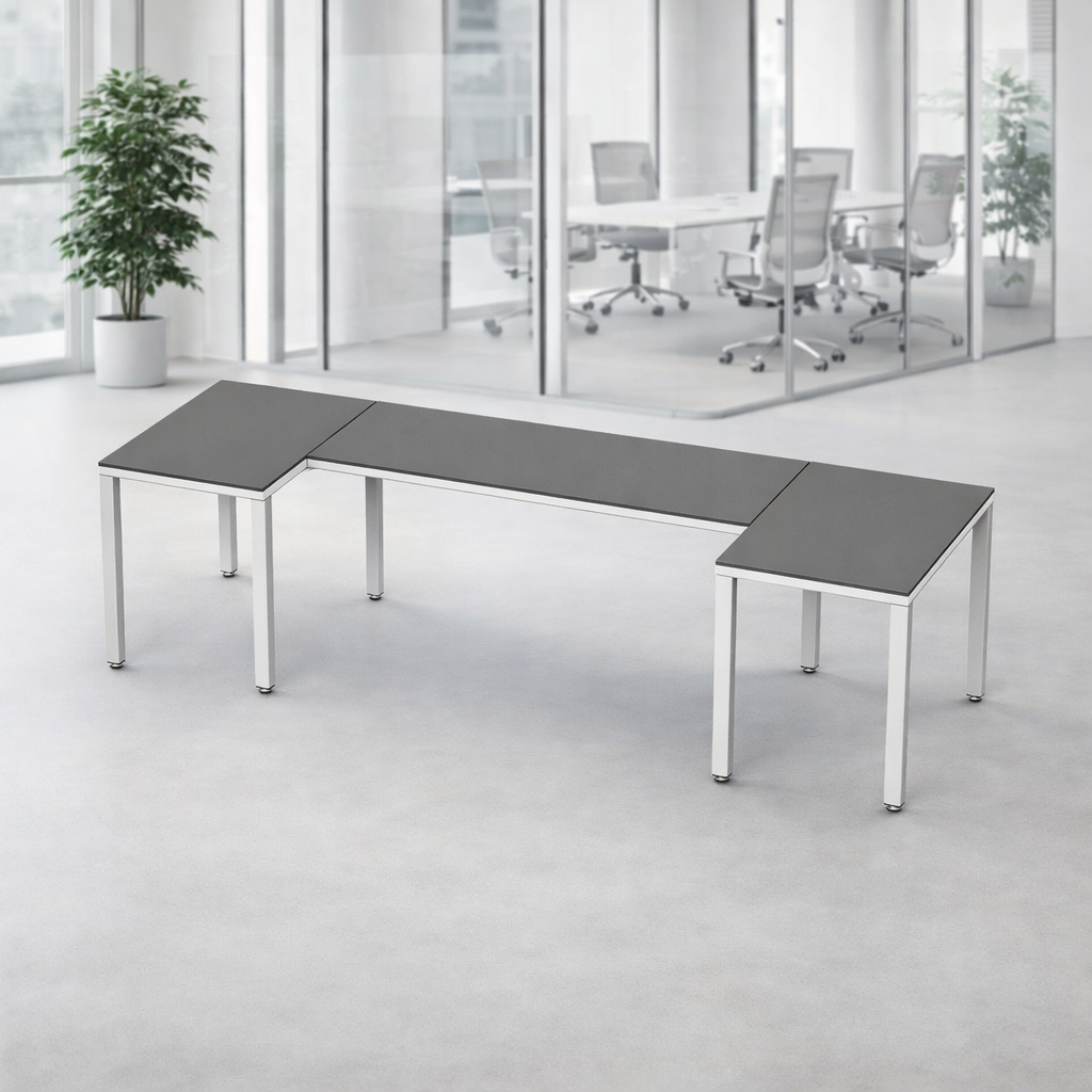 El escritorio en U conformada por 3 escritorios es ideal para un ejecutivo ya que permite una distribución eficiente del espacio, facilita la colaboración con otros compañeros y proporciona un entorno de trabajo versátil que puede usarse para reuniones, presentaciones y tareas individuales, todo al mismo tiempo.