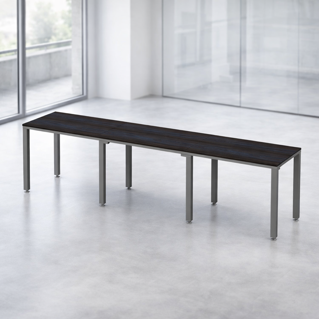 Escritorio lineal para 3 personas es una configuración lineal que permite extender su área de trabajo sin límite. Puede ir de 3 a un número ilimitado de personas.