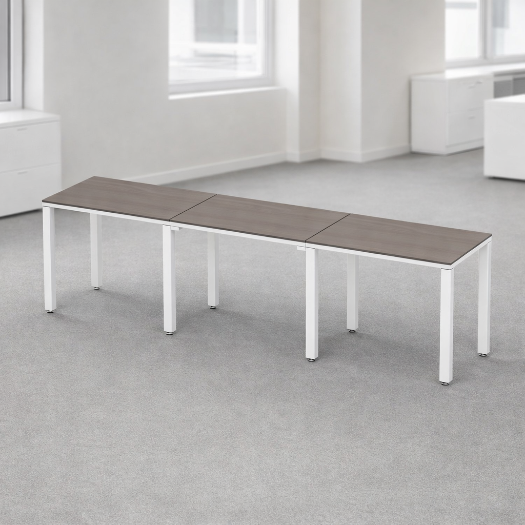 Escritorio Lineal Billydesk 270x60cm (3 personas) – Ceniza-Blanco