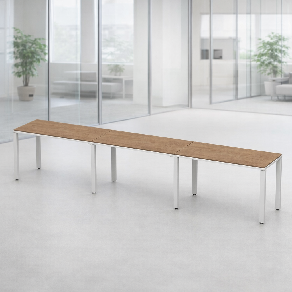 Escritorio lineal para 3 personas es una configuración lineal que permite extender su área de trabajo sin límite. Puede ir de 3 a un número ilimitado de personas.
