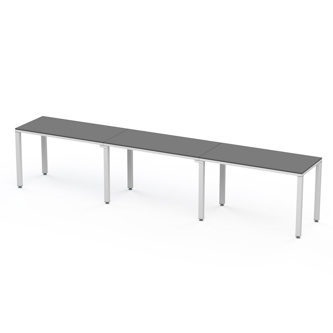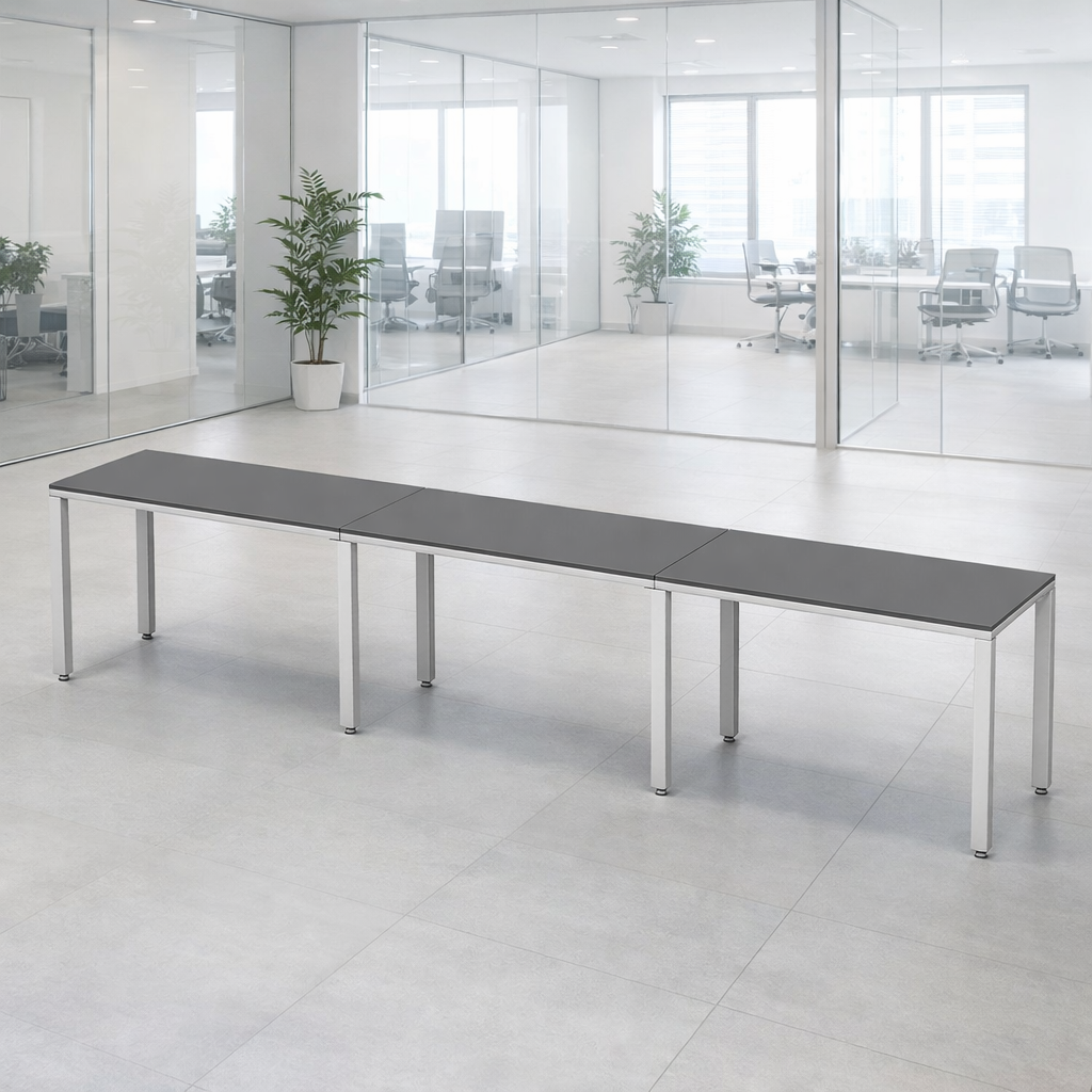 Escritorio lineal para 3 personas es una configuración lineal que permite extender su área de trabajo sin límite. Puede ir de 3 a un número ilimitado de personas.