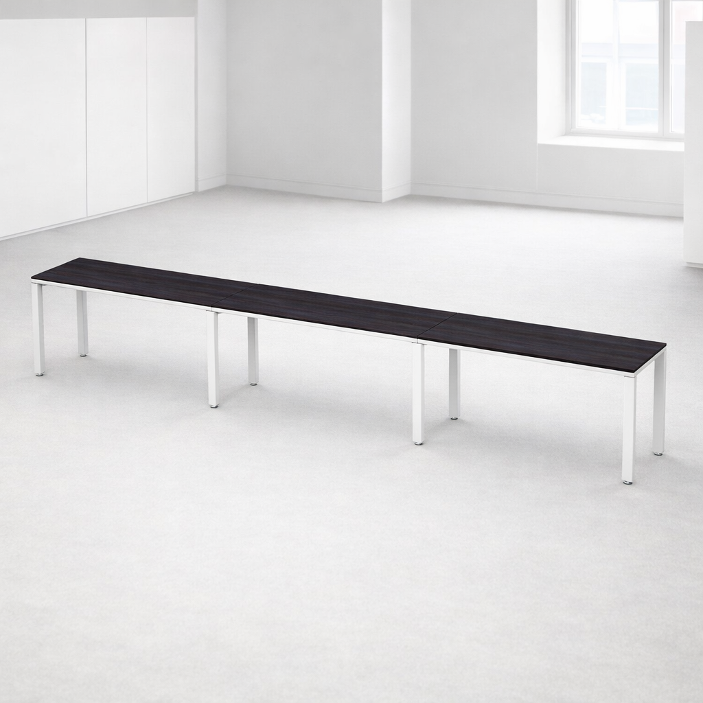 Escritorio lineal para 3 personas es una configuración lineal que permite extender su área de trabajo sin límite. Puede ir de 3 a un número ilimitado de personas.