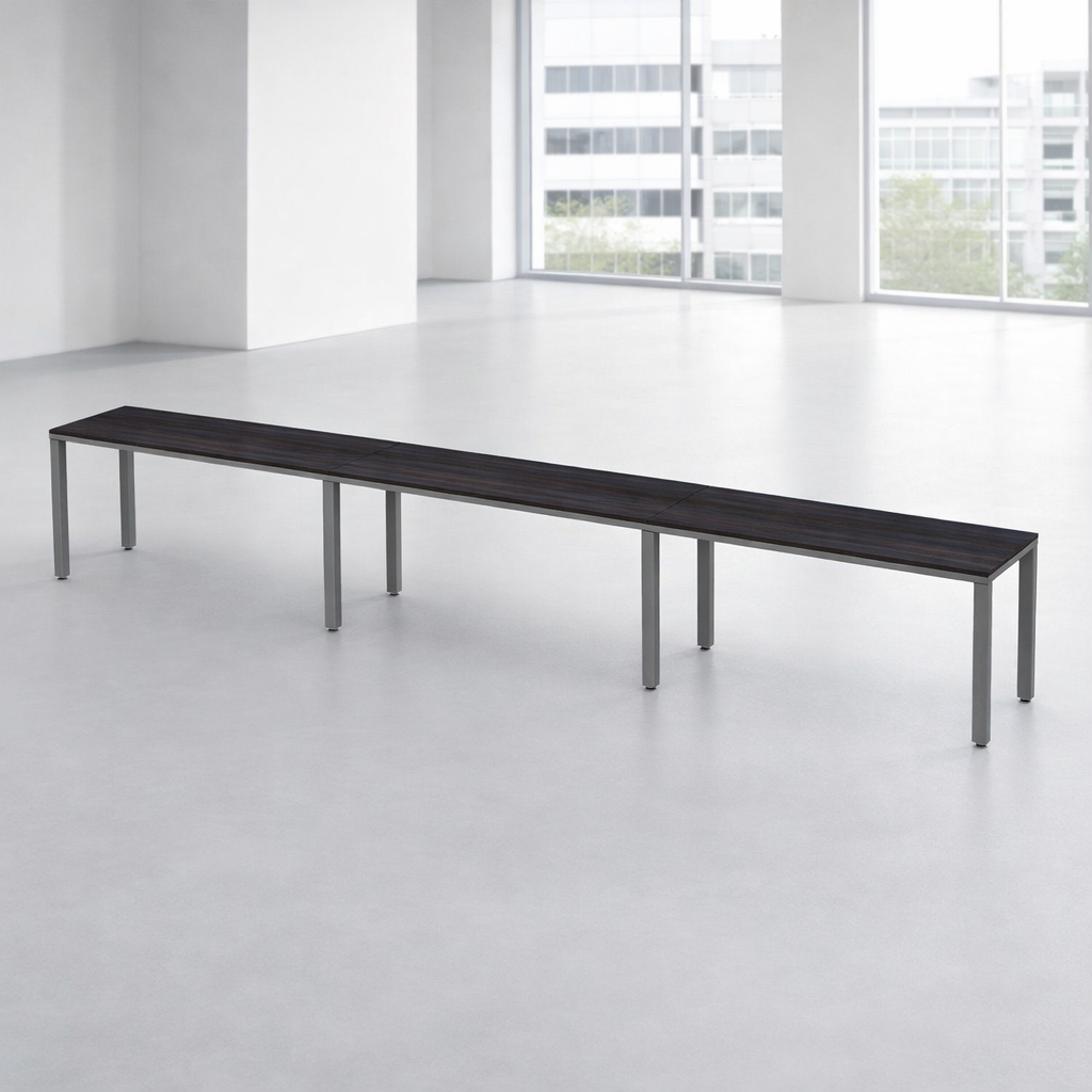 Escritorio lineal para 3 personas es una configuración lineal que permite extender su área de trabajo sin límite. Puede ir de 3 a un número ilimitado de personas.