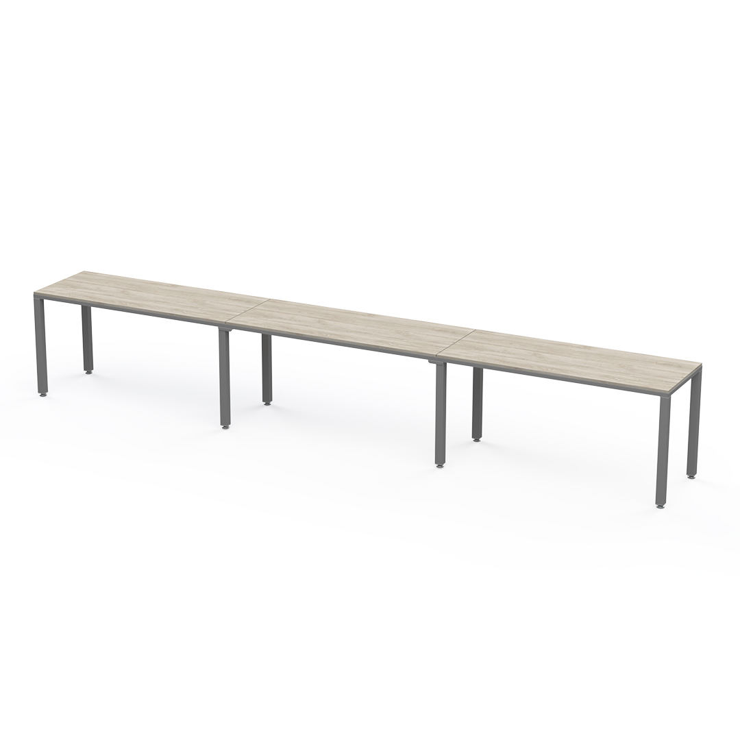 Escritorio lineal para 3 personas es una configuración lineal que permite extender su área de trabajo sin límite. Puede ir de 3 a un número ilimitado de personas.