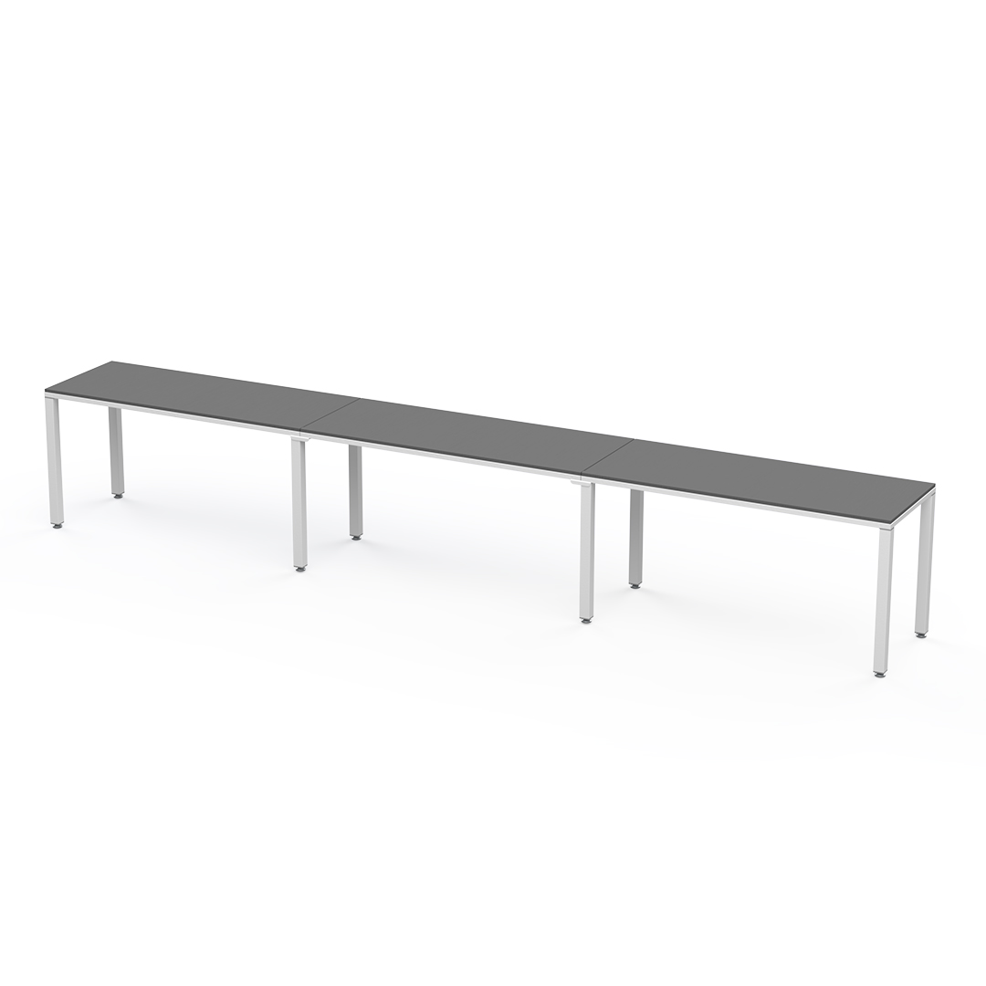 Escritorio lineal para 3 personas es una configuración lineal que permite extender su área de trabajo sin límite. Puede ir de 3 a un número ilimitado de personas.