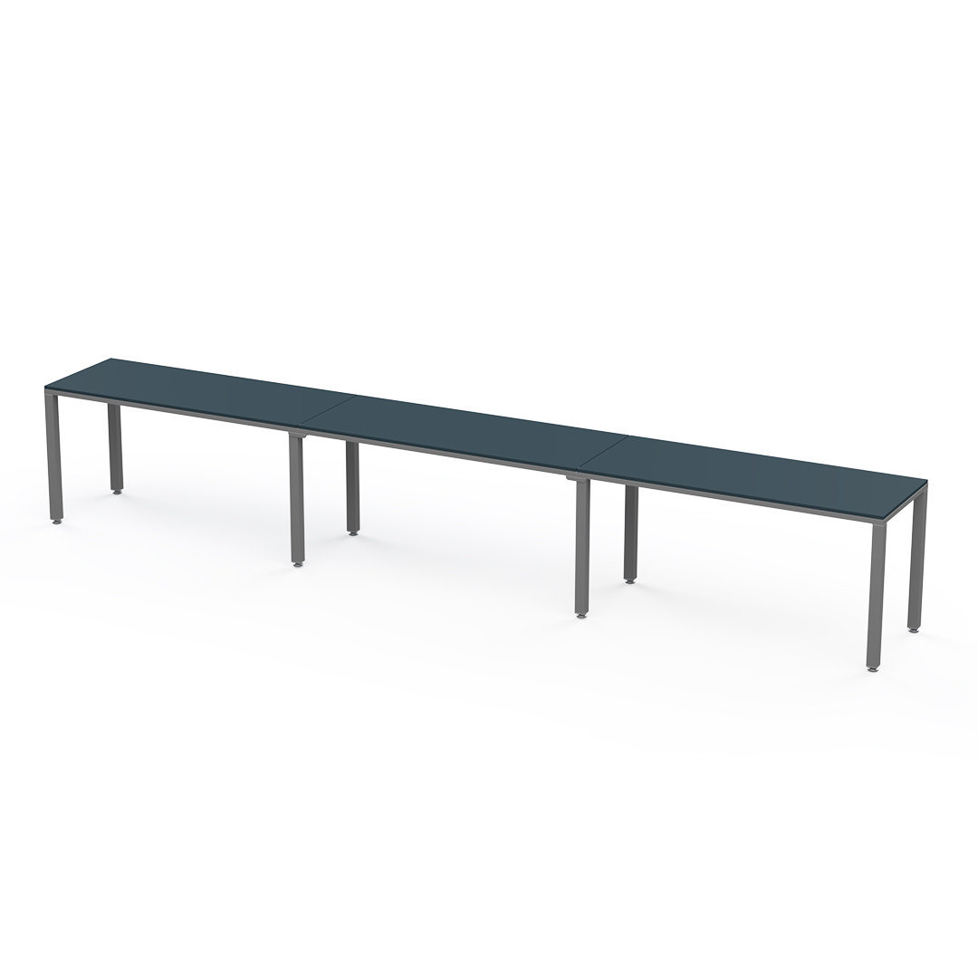 Escritorio lineal para 3 personas es una configuración lineal que permite extender su área de trabajo sin límite. Puede ir de 3 a un número ilimitado de personas.