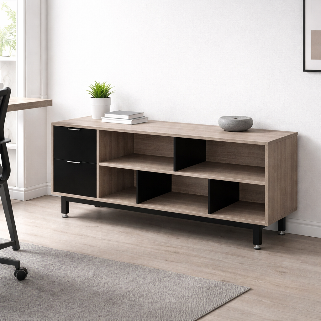 Credenza Alta con Papelera y Archivo 180 x 75 cm (Izquierdo, Ceniza)