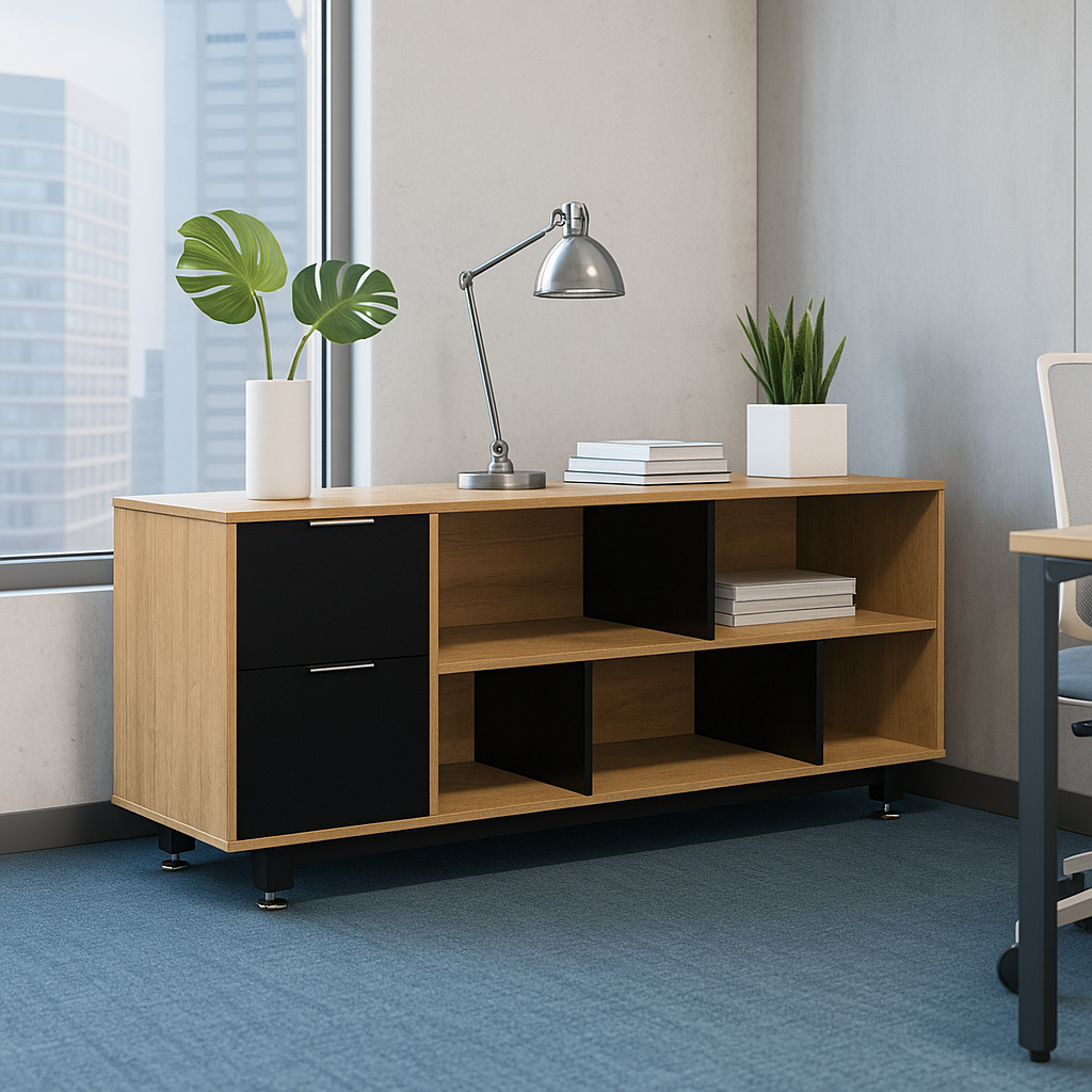 Credenza Baja con Papelera y Archivo 150 x 67.5 cm (Izquierdo, Monarca)