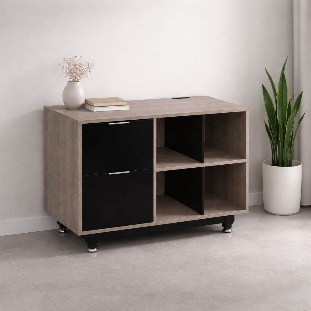 Credenza Baja con Papelera y Archivo 90 x 67.5 cm (Izquierdo, Ceniza)