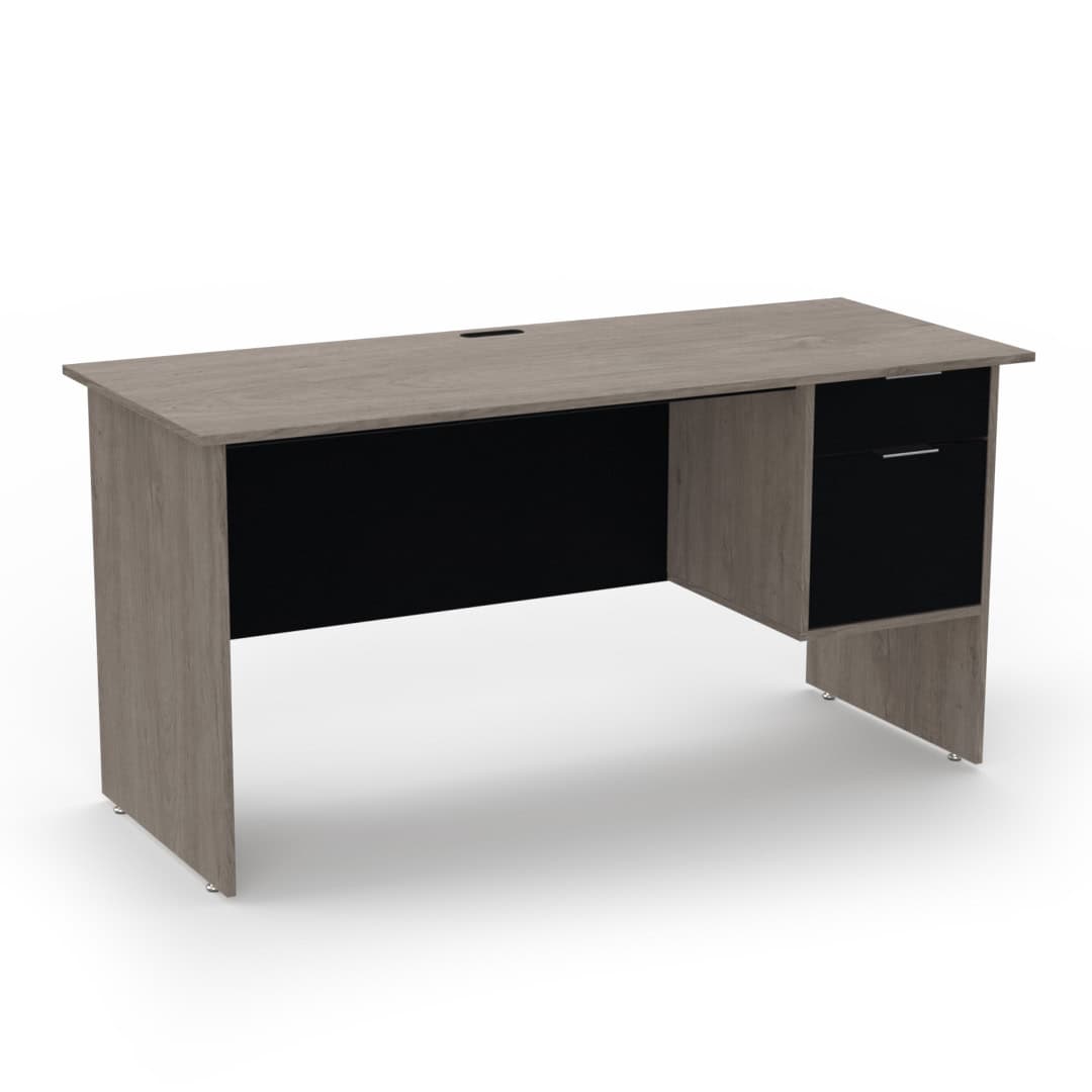 Escritorio que ofrece la combinación ideal de funcionalidad y organización para crear un espacio de trabajo más completo y eficiente. Incorpora prácticos elementos como papelera para documentos y archivero con portalegajos tamaño oficio o carta, perfectos para mantener todo en orden y al alcance.