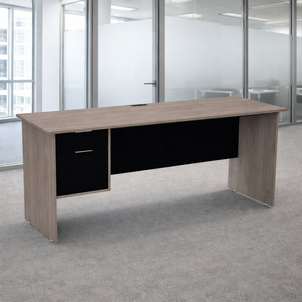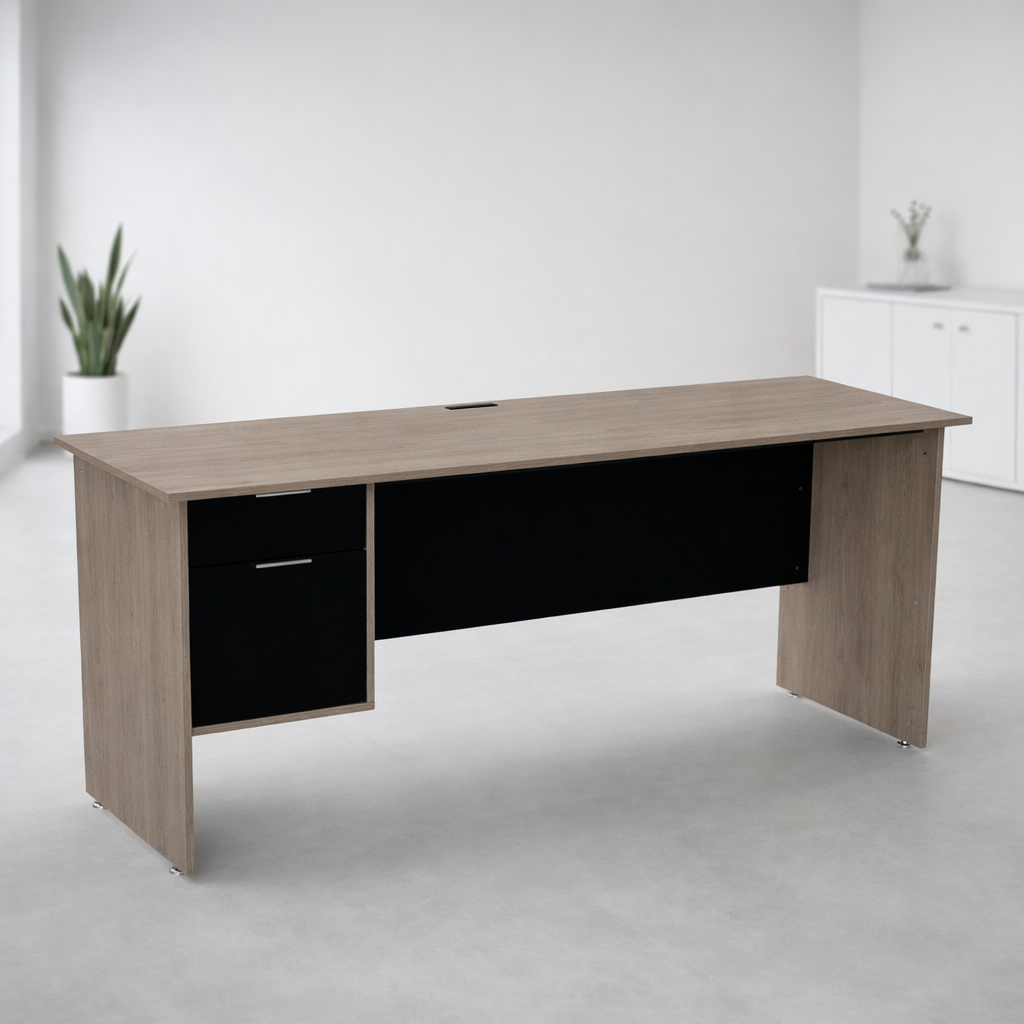 Escritorio que ofrece la combinación ideal de funcionalidad y organización para crear un espacio de trabajo más completo y eficiente. Incorpora prácticos elementos como papelera para documentos y archivero con portalegajos tamaño oficio o carta, perfectos para mantener todo en orden y al alcance.