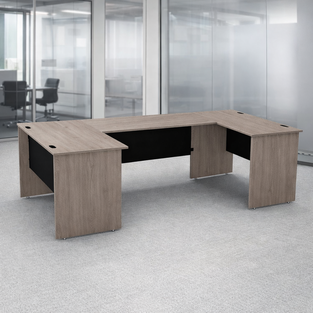 Escritorio ejecutivo 120×240 cm Ceniza ofrece un espacio de trabajo amplio, elegante y profesional, ideal para oficinas modernas, despachos ejecutivos o home office de alto nivel. Su diseño robusto y sólido proporciona una superficie generosa para trabajar cómodamente con computadoras, documentos y accesorios, garantizando orden y eficiencia.