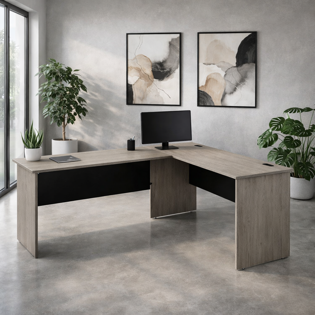 Escritorio en L es la opción perfecta para aprovechar al máximo el espacio en donde lo coloques, diseñado para maximizar el área de trabajo pues su forma en L permite aprovechar esquinas y crear espacios de trabajo eficientes. Su diseño funcional permite aprovechar esquinas y áreas reducidas, ofreciendo una superficie amplia para organizar computadora, documentos, accesorios y equipos de trabajo sin sacrificar movilidad ni orden.