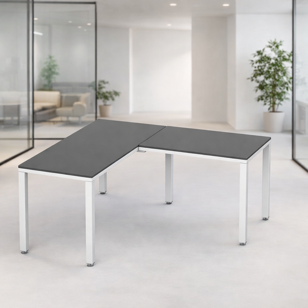 Escritorio en L es una configuración de Billydesk 150×150 cm en Melamina Oxford con estructura metálica Blanco. Ideal para espacios de oficina que requieren funcionalidad y versatilidad, ofrece dos superficies de trabajo para multitareas, como atención a visitas y gestión de papelería. Un sistema flexible y escalable que permite crecer a bajo costo sin comprometer diseño ni resistencia.