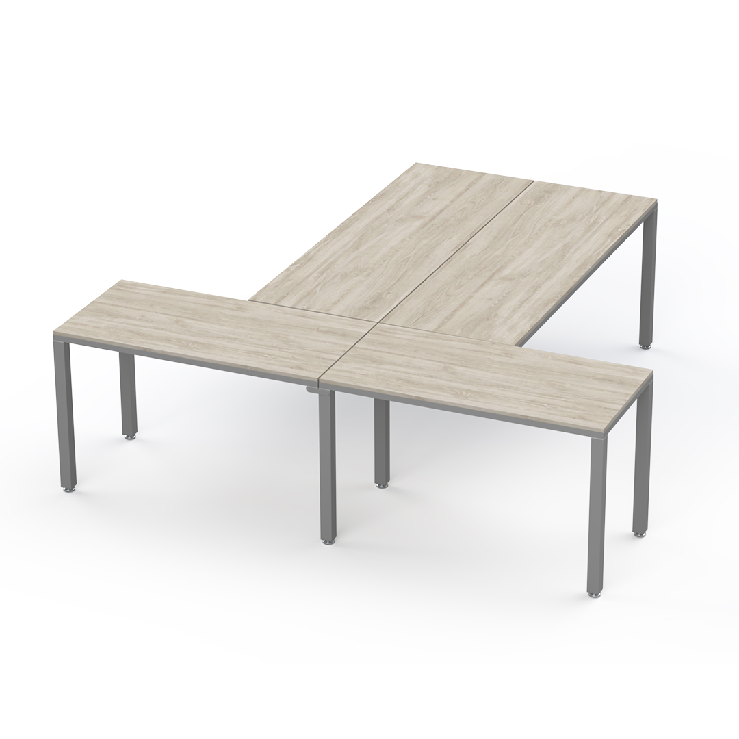 Escritorio en T para 2 personas con melamina color Encino polar y base Oxford es la solución perfecta para oficinas modernas y espacios de coworking que buscan aprovechar mejor el espacio sin perder comodidad. Su diseño favorece el trabajo colaborativo, mejora la organización y crea un entorno dinámico y altamente productivo.