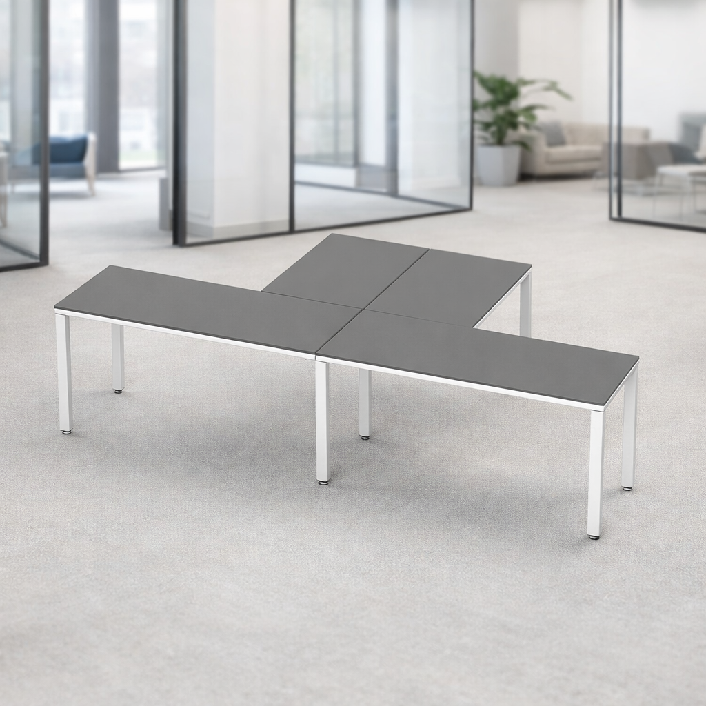 Escritorio en T para 2 personas con melamina color Oxford y base Oxford es la solución perfecta para oficinas modernas y espacios de coworking que buscan aprovechar mejor el espacio sin perder comodidad. Su diseño favorece el trabajo colaborativo, mejora la organización y crea un entorno dinámico y altamente productivo.