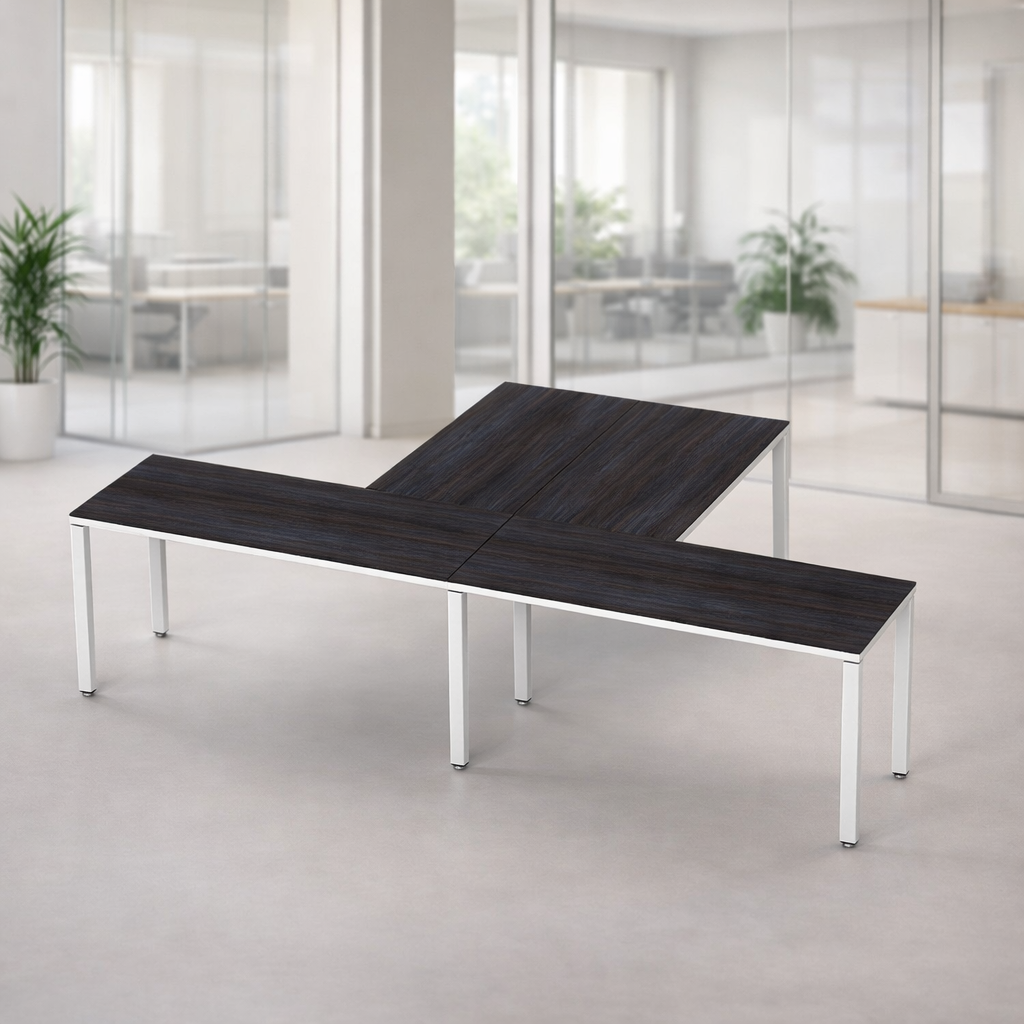 Escritorio en T para 2 personas con melamina color Anáhuac y base Blanco es la solución perfecta para oficinas modernas y espacios de coworking que buscan aprovechar mejor el espacio sin perder comodidad. Su diseño favorece el trabajo colaborativo, mejora la organización y crea un entorno dinámico y altamente productivo.