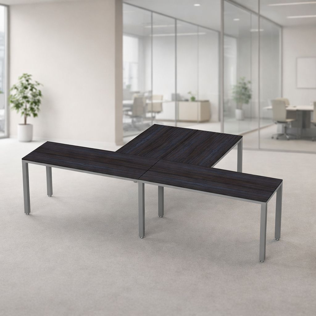 Escritorio en T para 2 personas con melamina color Anáhuac y base Oxford es la solución perfecta para oficinas modernas y espacios de coworking que buscan aprovechar mejor el espacio sin perder comodidad. Su diseño favorece el trabajo colaborativo, mejora la organización y crea un entorno dinámico y altamente productivo.